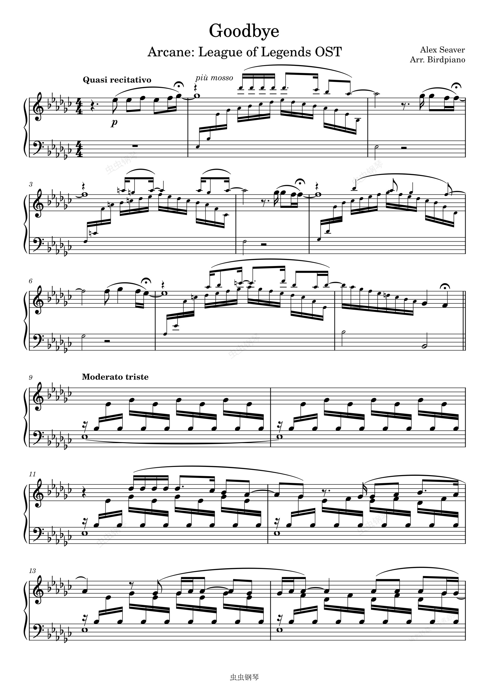 钢琴谱:英雄联盟:双城之战 动画 Goodbye-Alex Seaver