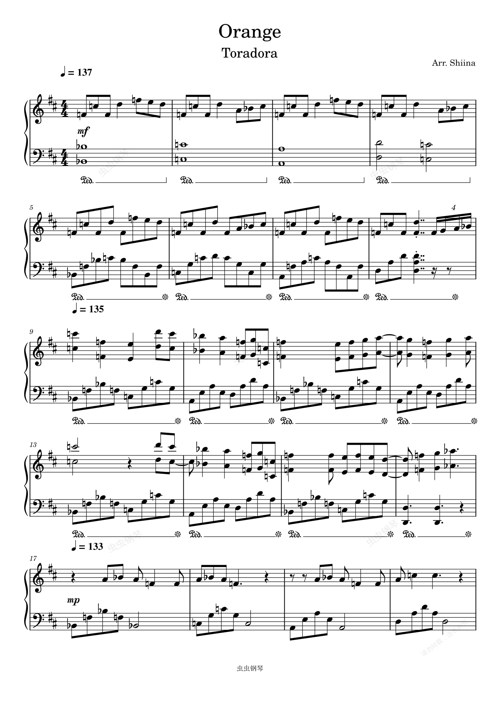 钢琴谱:龙与虎 (Toradora) 动画 Orange