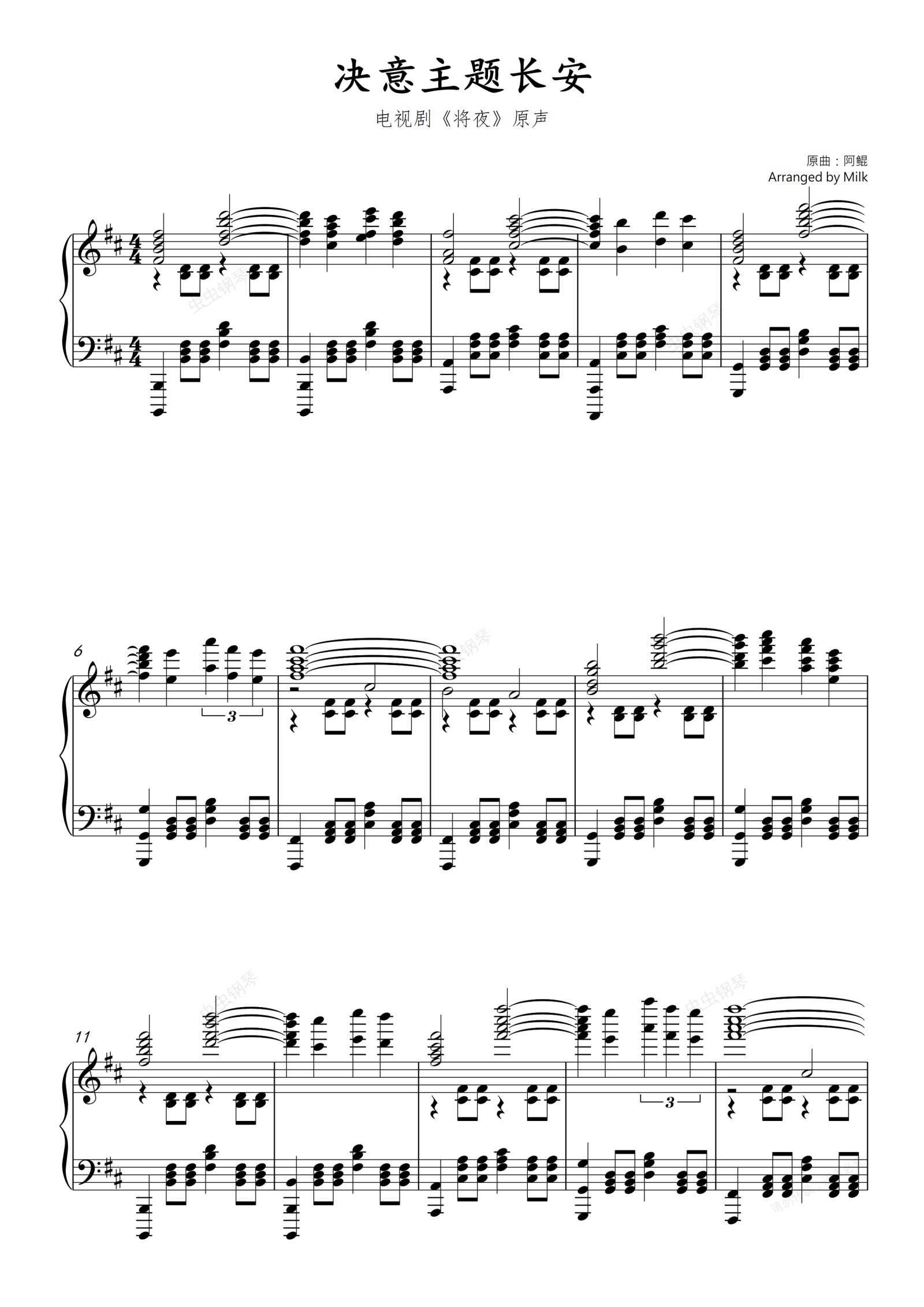 钢琴谱:【milk】决意主题长安-《将夜》电视剧原声