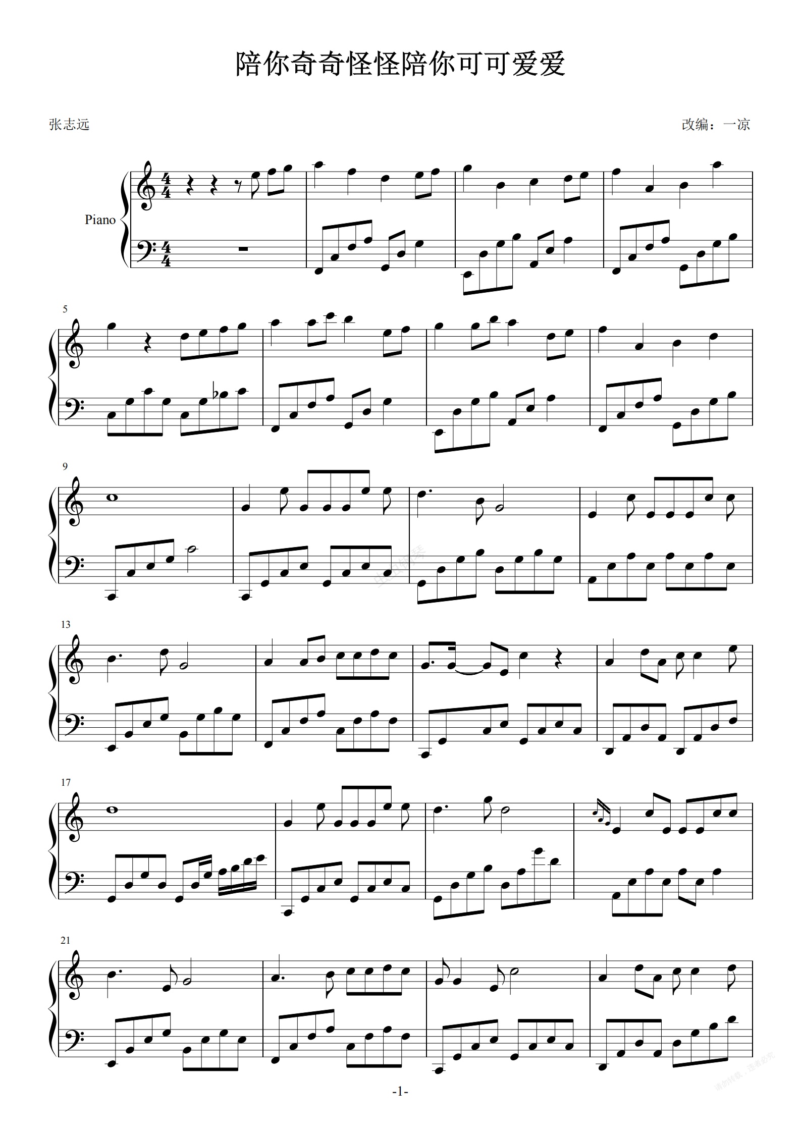钢琴谱:我陪你奇奇怪怪 陪你可可爱爱