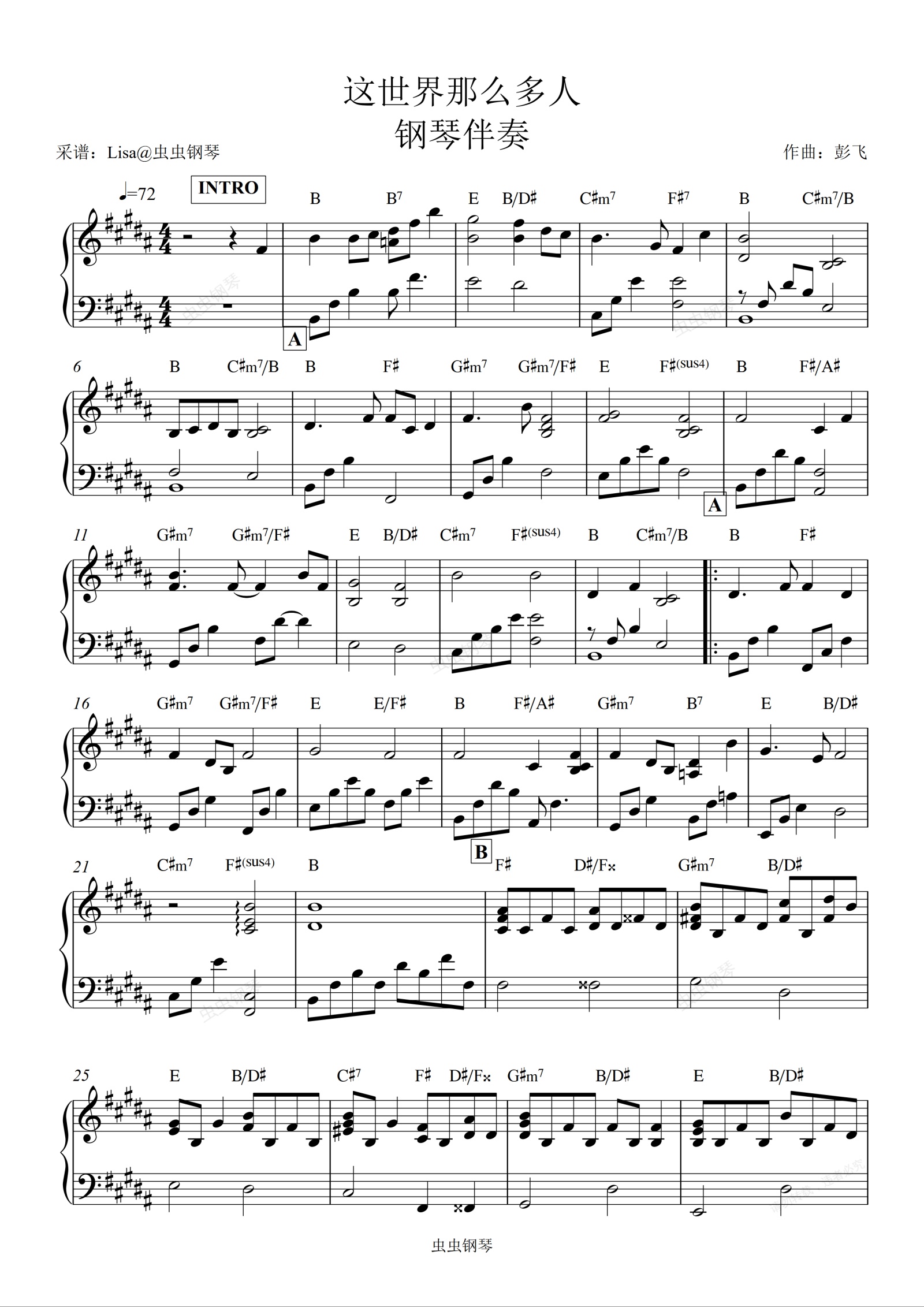 钢琴谱:这世界那么多人钢琴伴奏