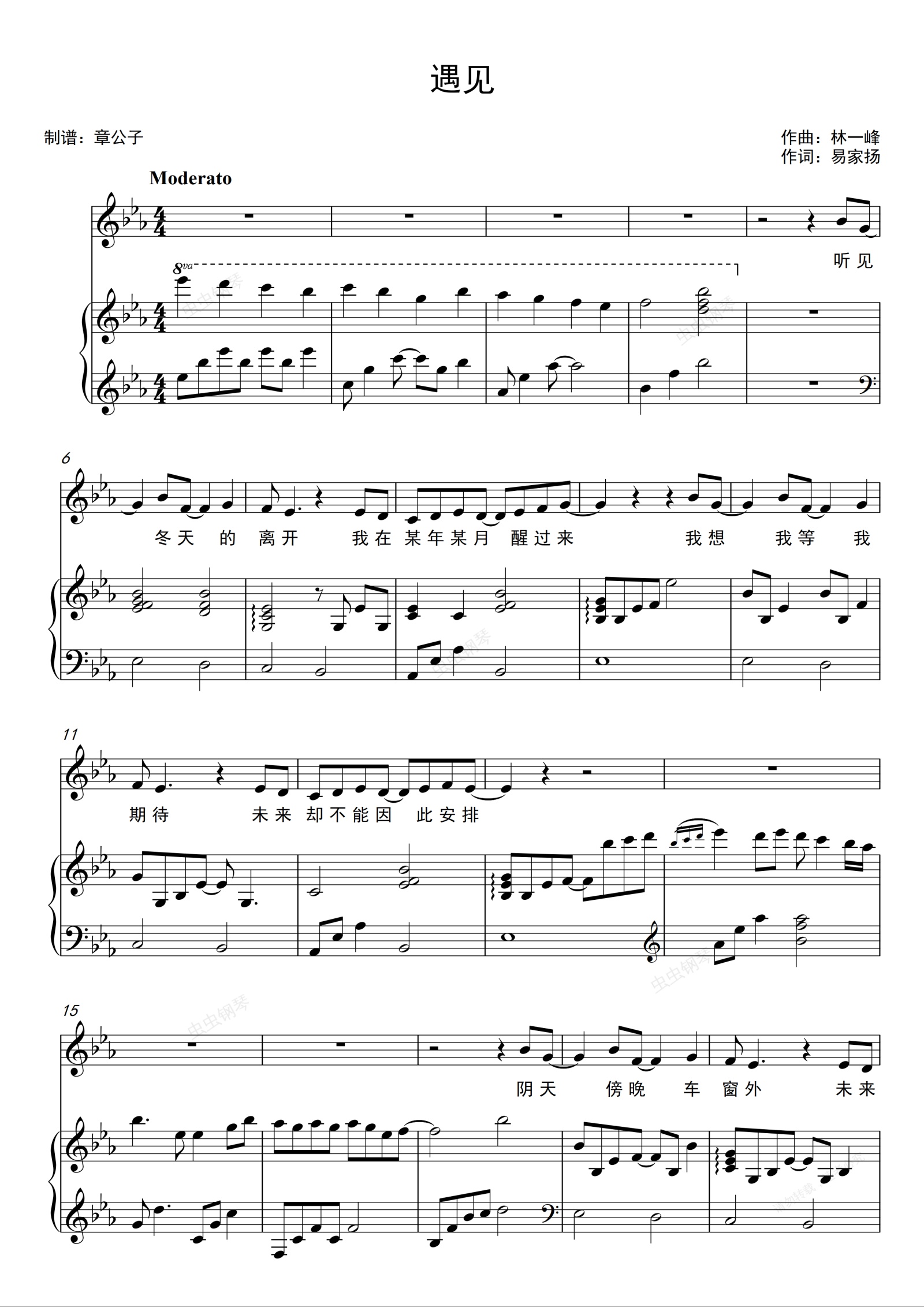 钢琴谱:《遇见》- 张敬轩 轩动心弦演唱会 弹唱(伴奏)谱 原调bE
