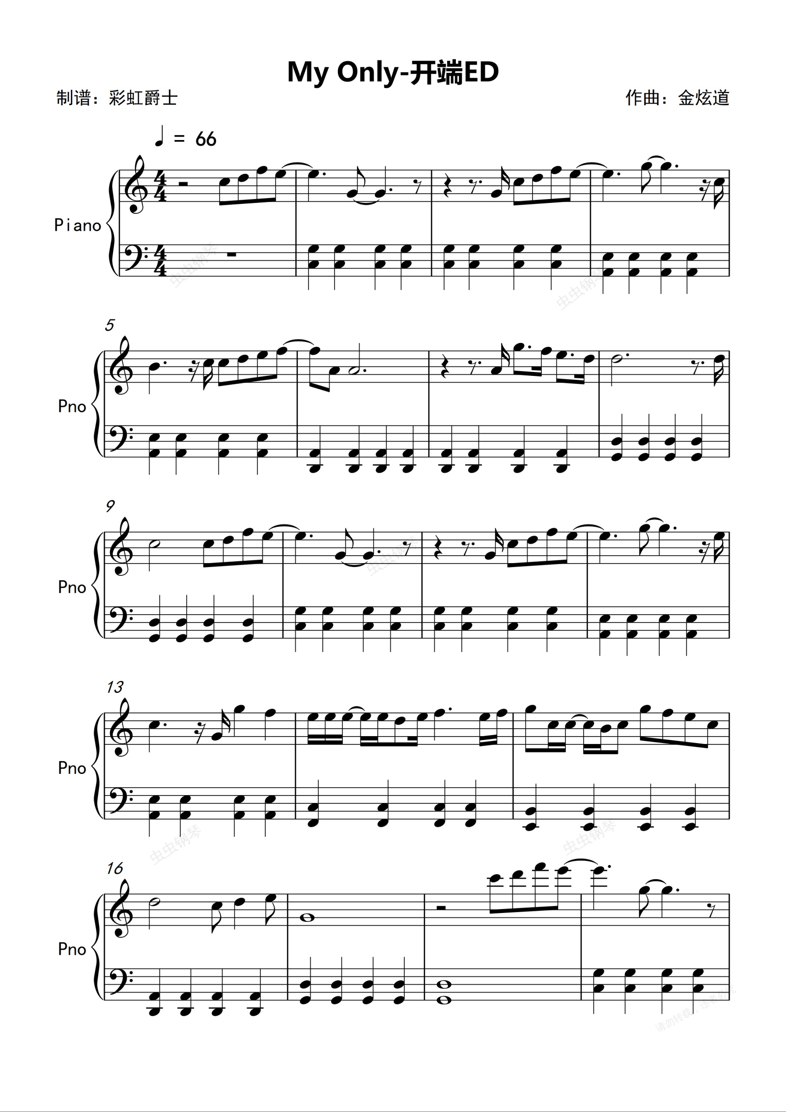 钢琴谱:My Only-开端ED 周深 简单版 c调版