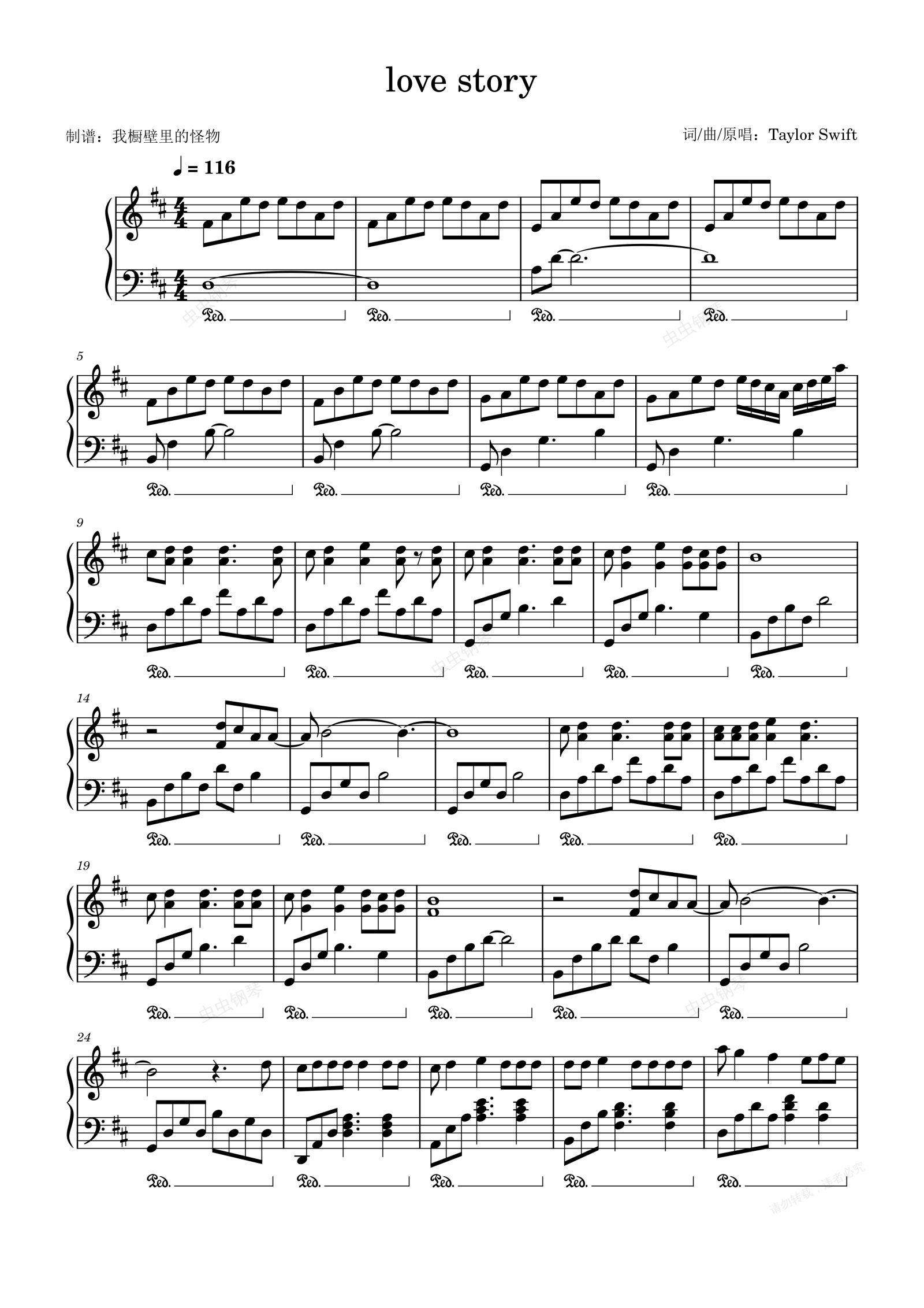 钢琴谱:【唯美独奏谱】love story爱情故事Taylor Swift霉霉「怪物」