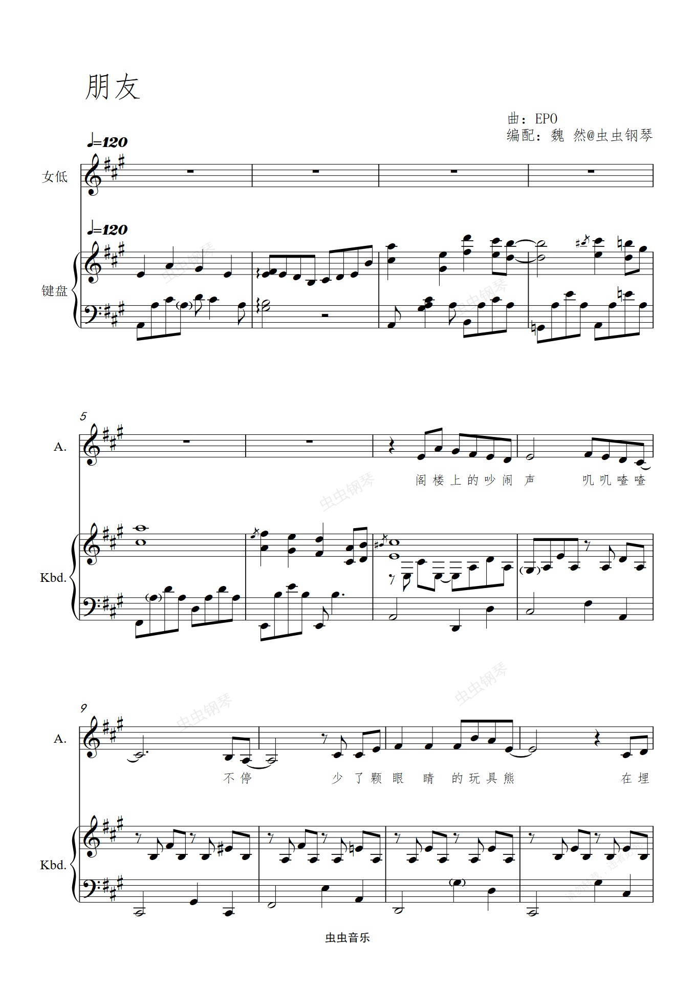 钢琴谱:【魔豆传奇】朋友(正谱)——『忧伤歌声』
