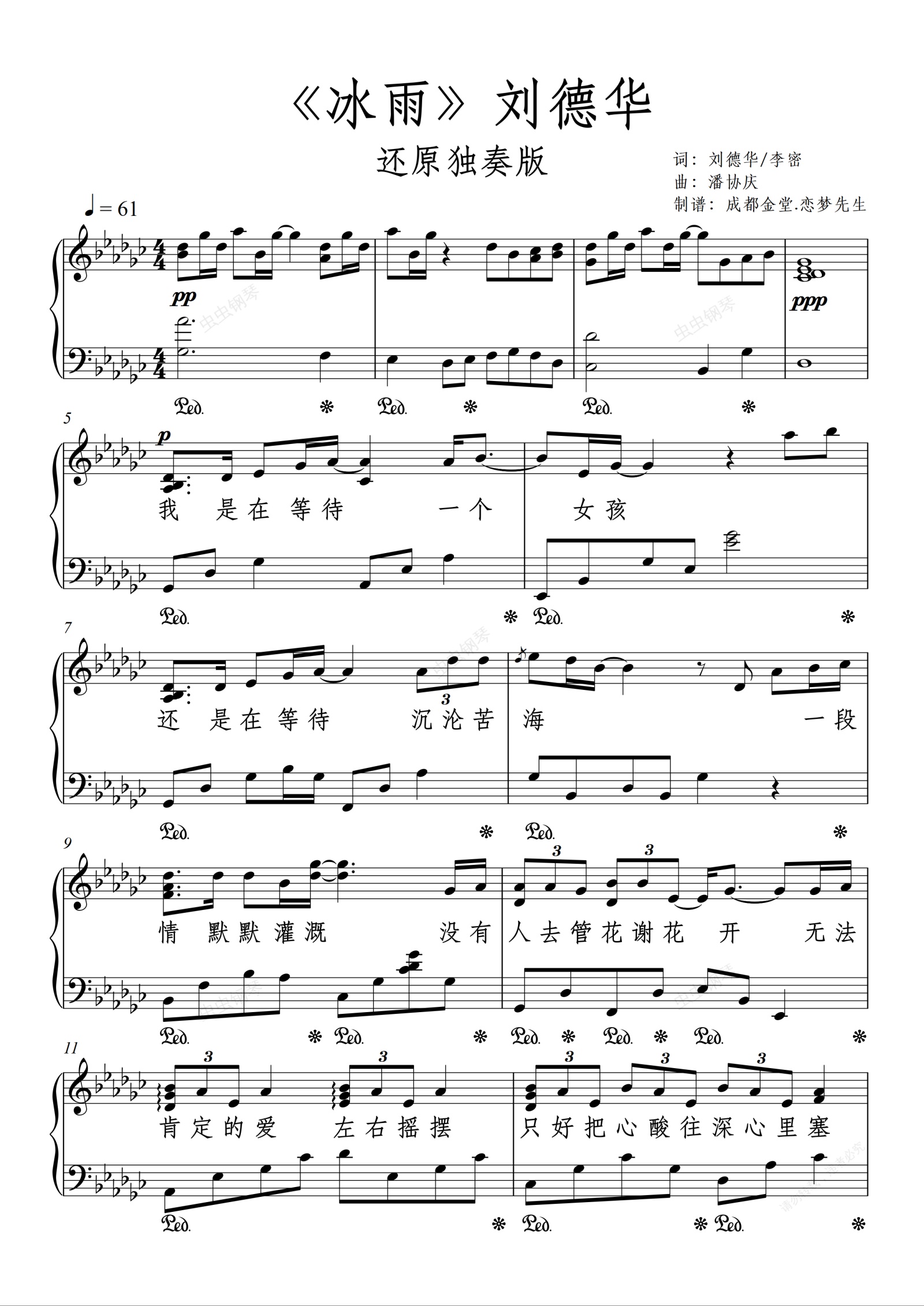钢琴谱:《冰雨》刘德华-高度还原独奏版