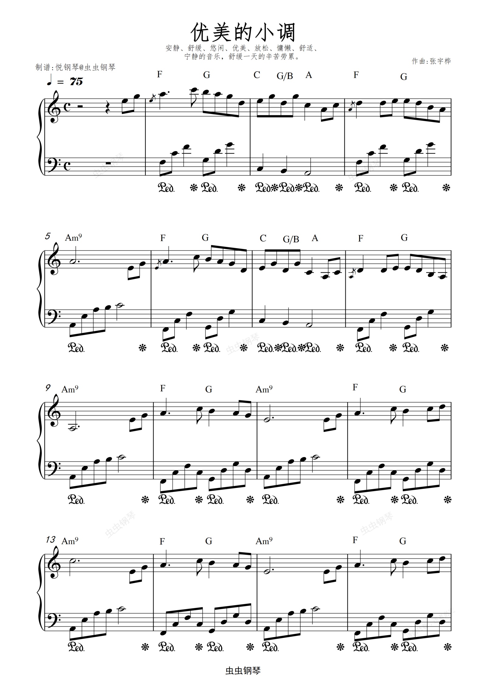 钢琴谱:优美的小调 C调版