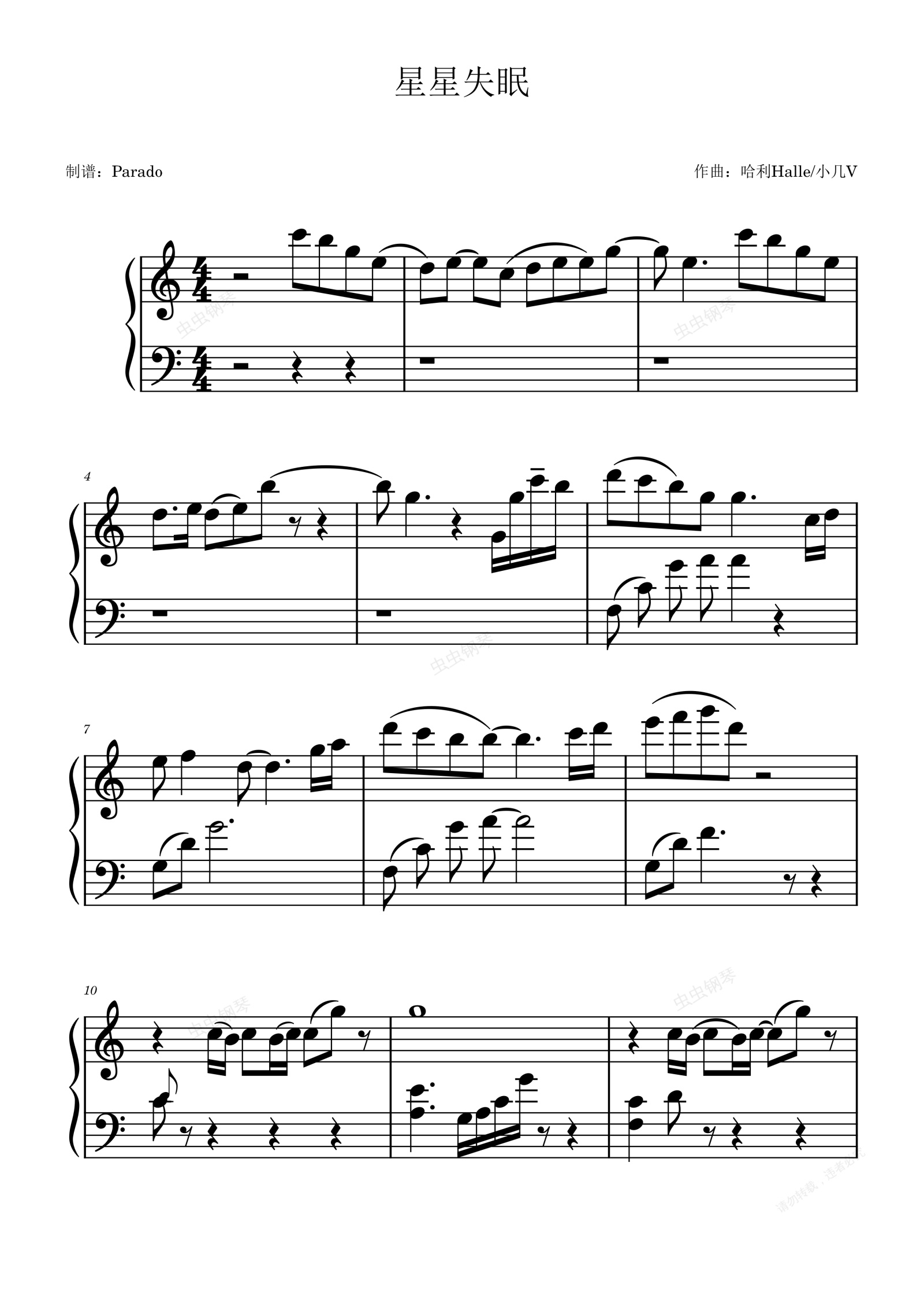 钢琴谱:星星失眠-哈利Halleeee-星星藏进星夜还有人没睡眠-抖音热歌-好听又好弹
