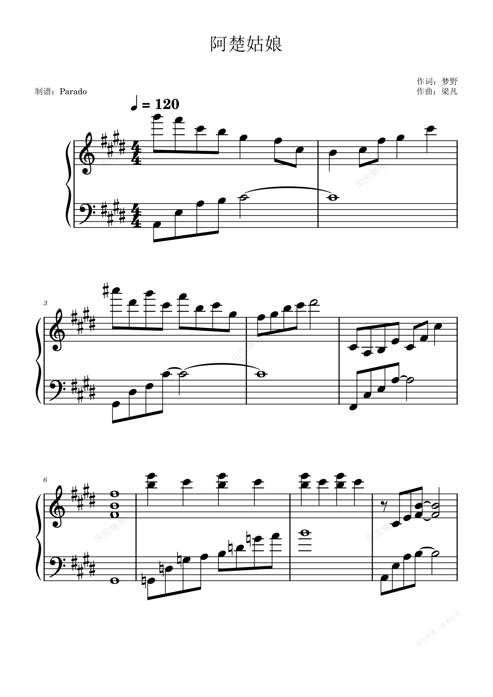 钢琴谱:阿楚姑娘-袁娅维-中国好歌曲第二季-抖音热曲-好听又好弹