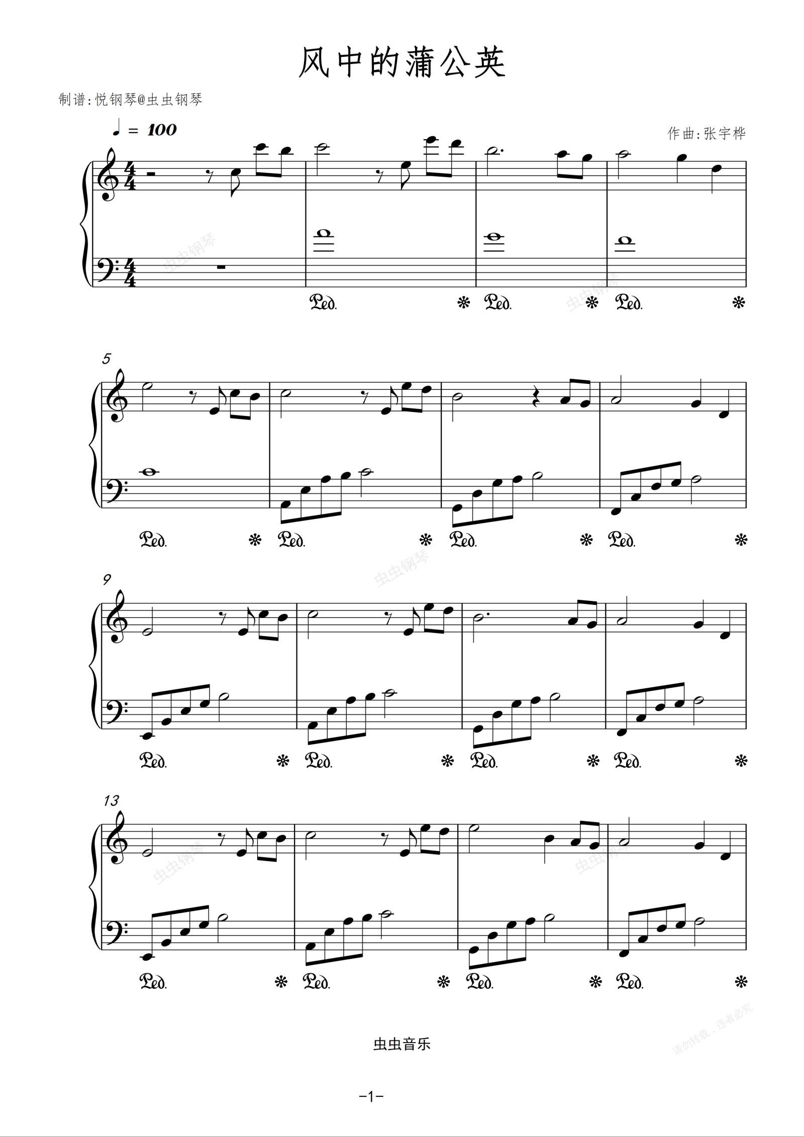 钢琴谱:风中的蒲公英(原版 原调)