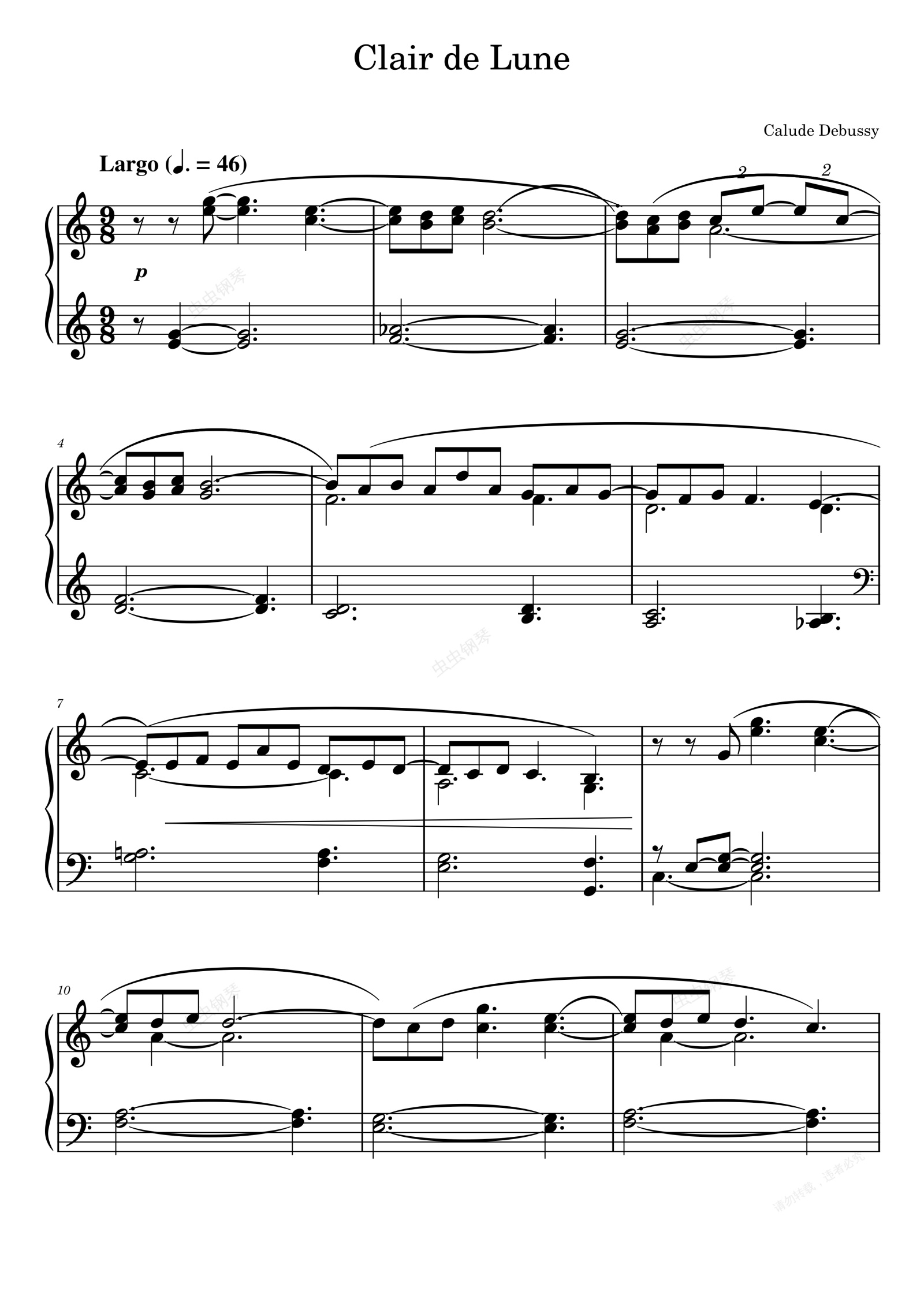 钢琴谱:月光 德彪西 Clair de Lune (easy)
