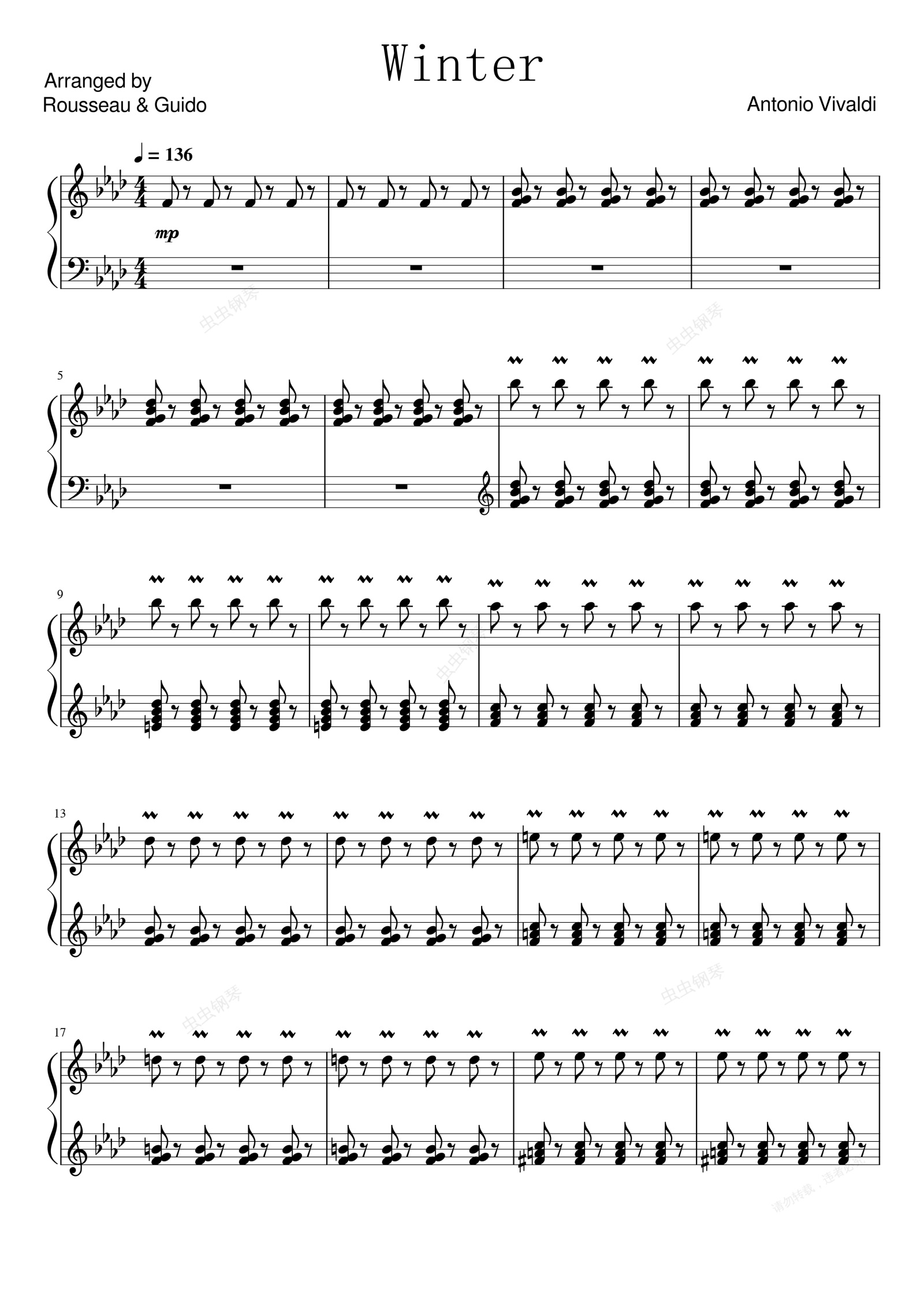 钢琴谱:维瓦尔第四季 冬Vivaldi - Winter (Rousseau Version)
