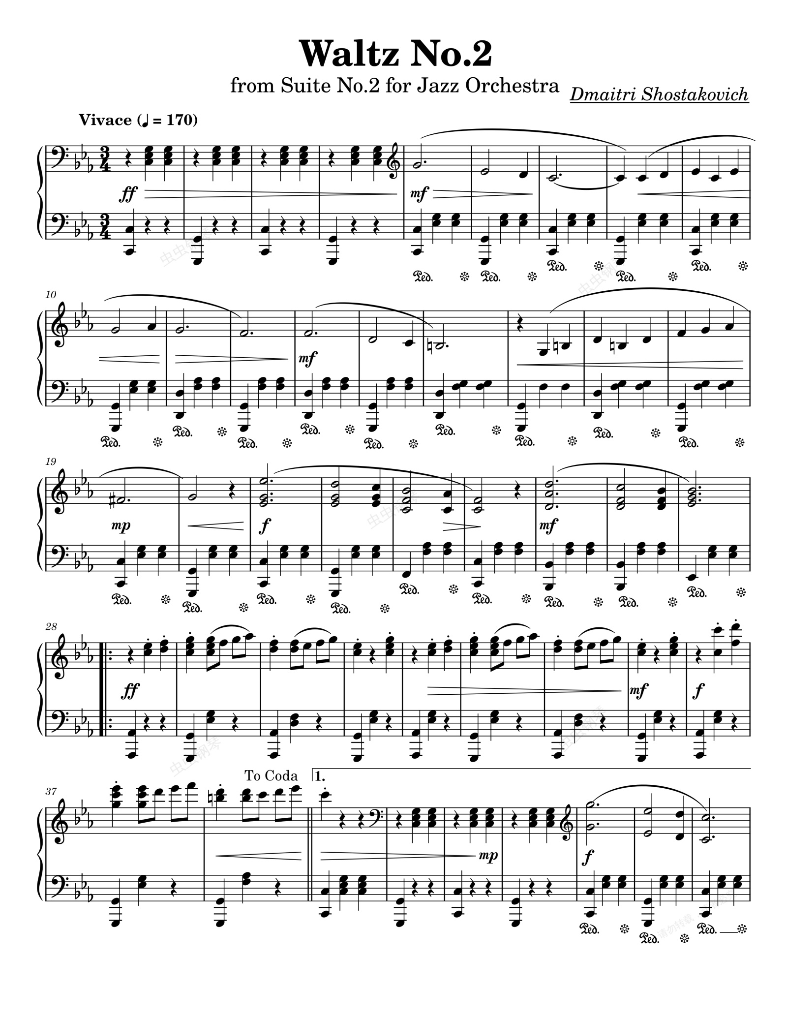钢琴谱:肖斯塔科维奇第二号圆舞曲 Waltz No. 2 (The Second Waltz) by Dmitri Shostakovich for Piano