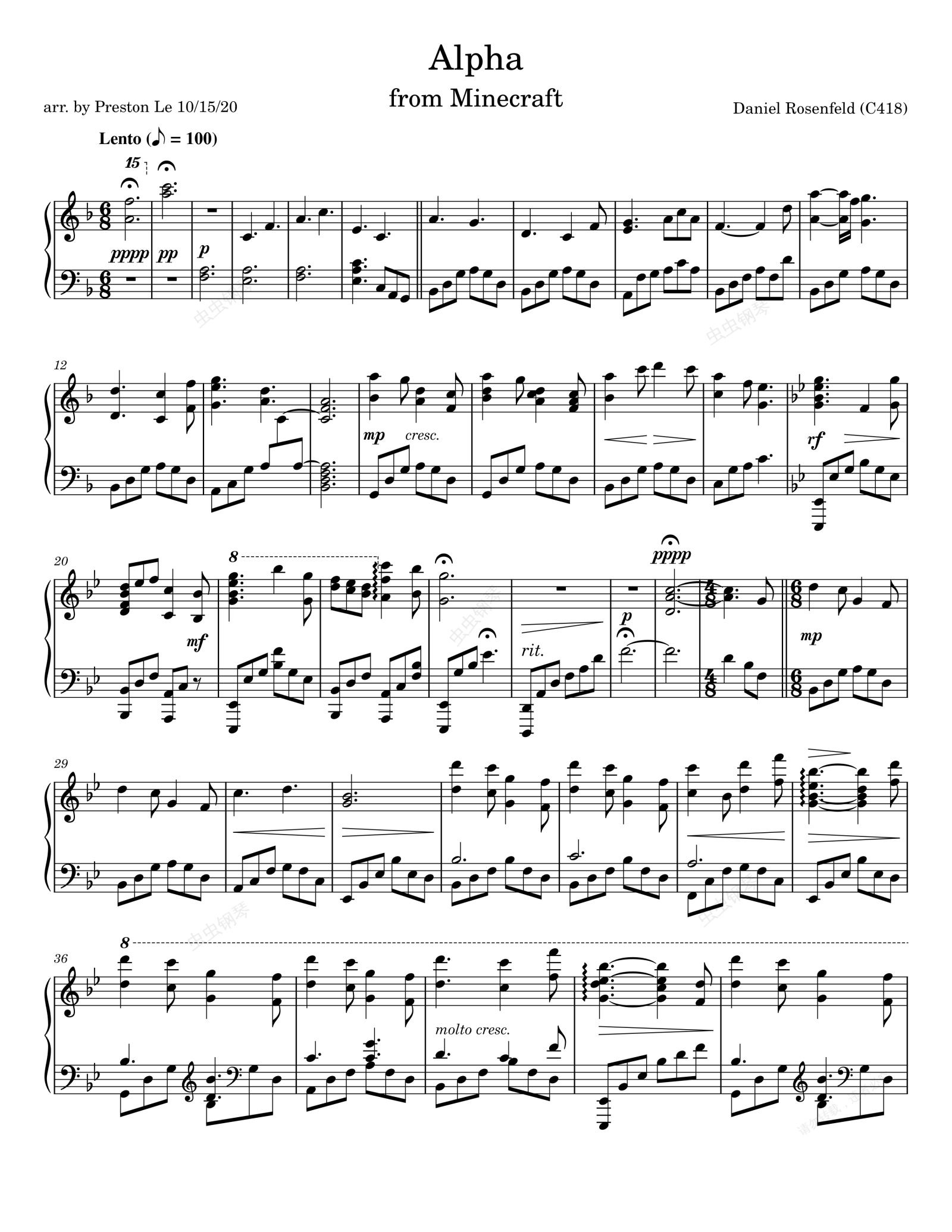 钢琴谱:Alpha (Minecraft 终末之诗背景音乐) Alpha (full) - Minecraft Credits/End Poem