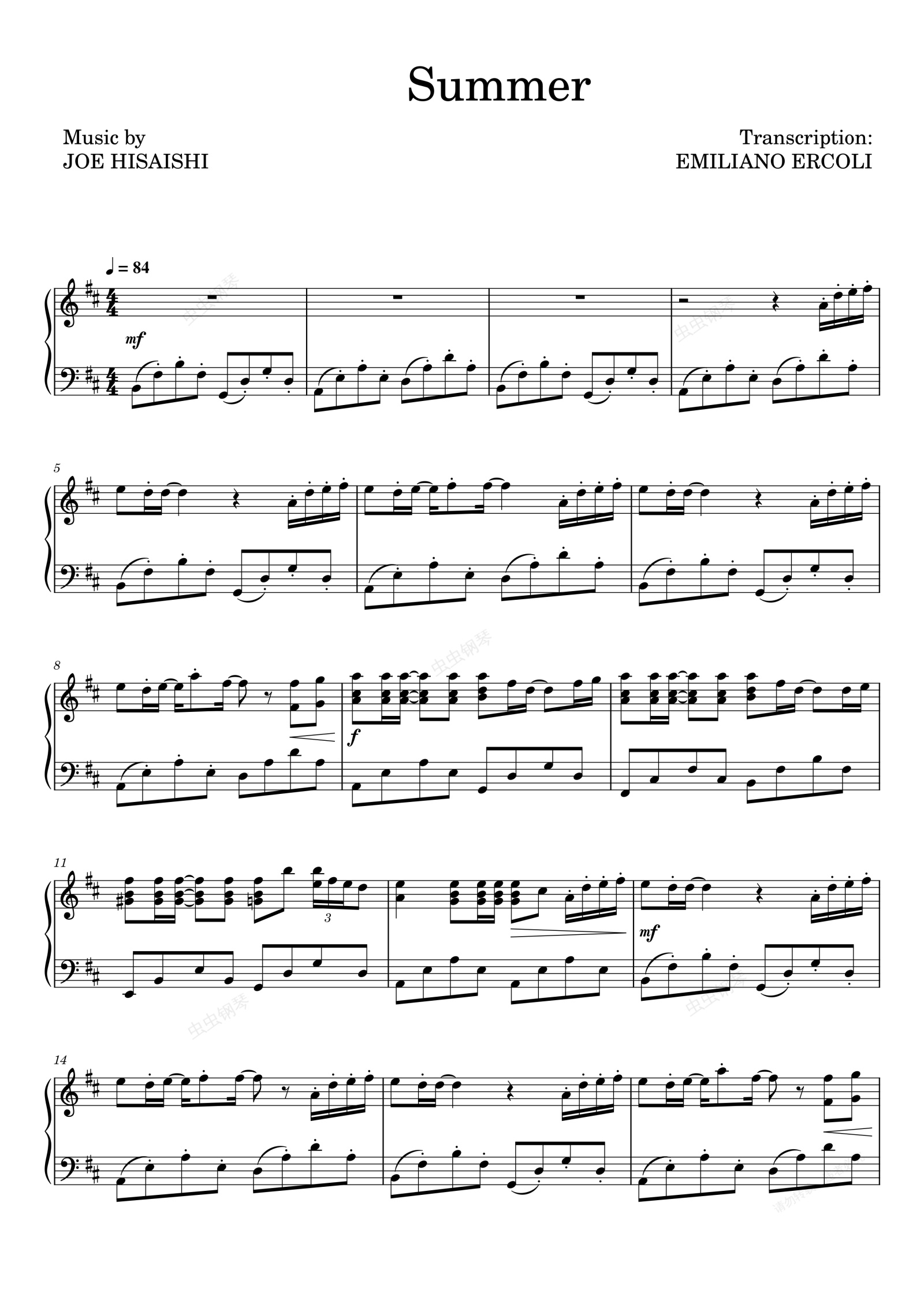 钢琴谱:菊次郎的夏天 电影 Summer - Joe Hisaishi