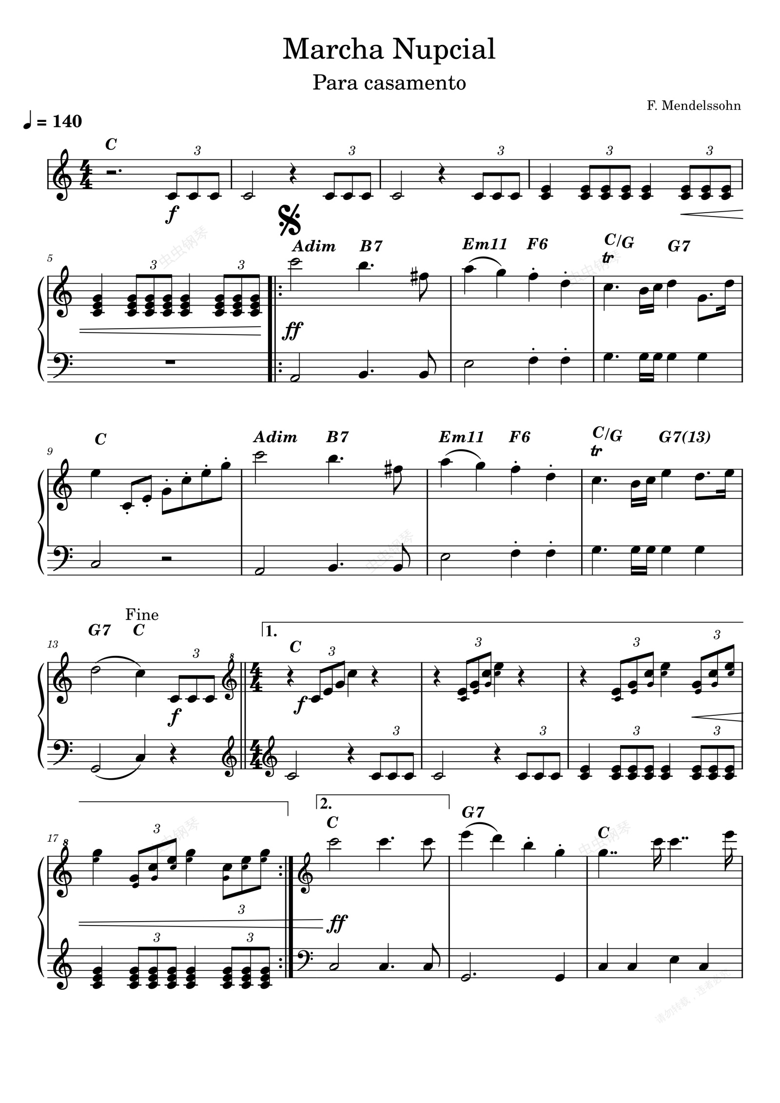 钢琴谱:婚礼进行曲 (门德尔松) Marcha Nupcial - Mendelssohn