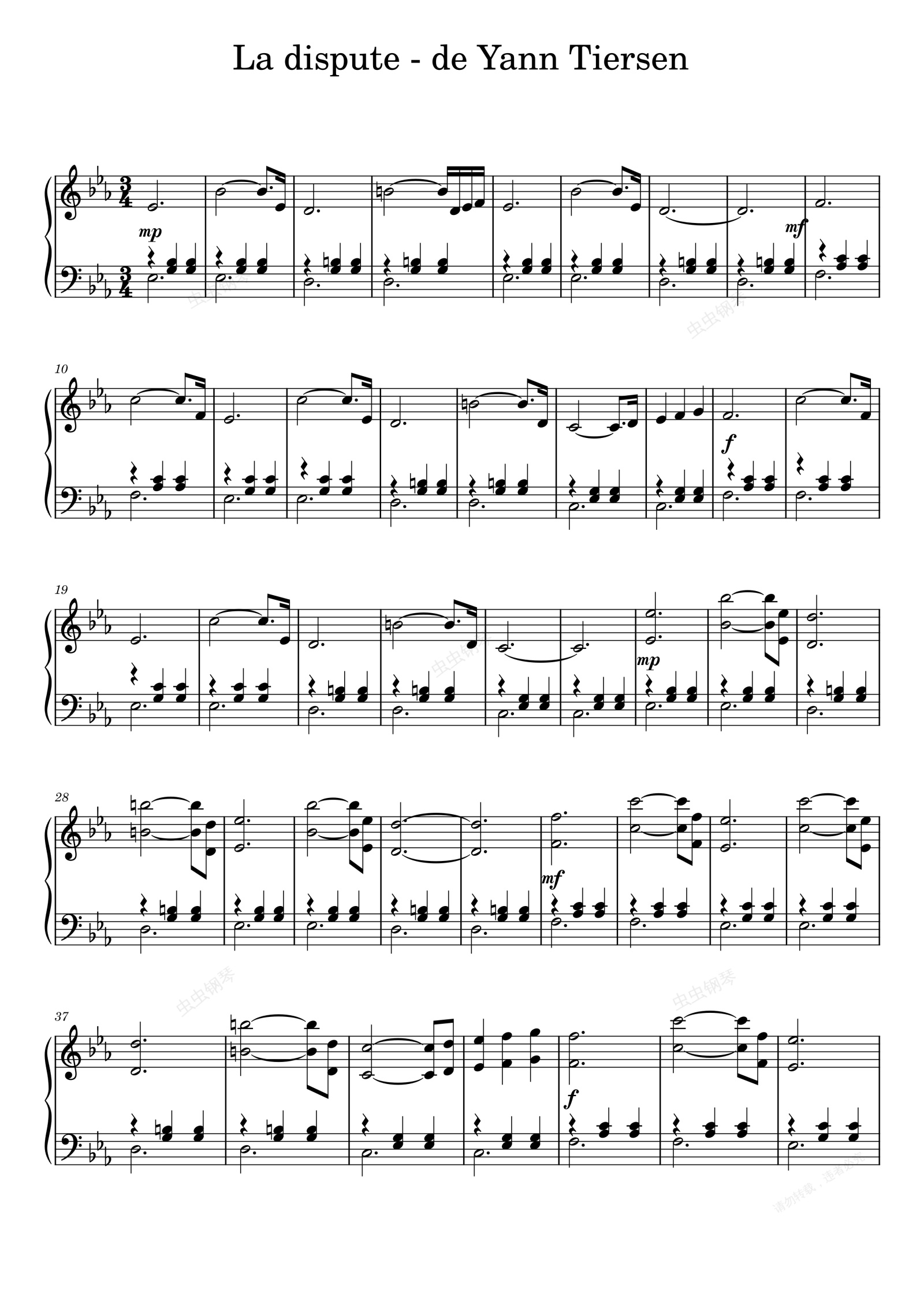 钢琴谱:天使爱美丽 电影 LA DISPUTE de yann tiersen