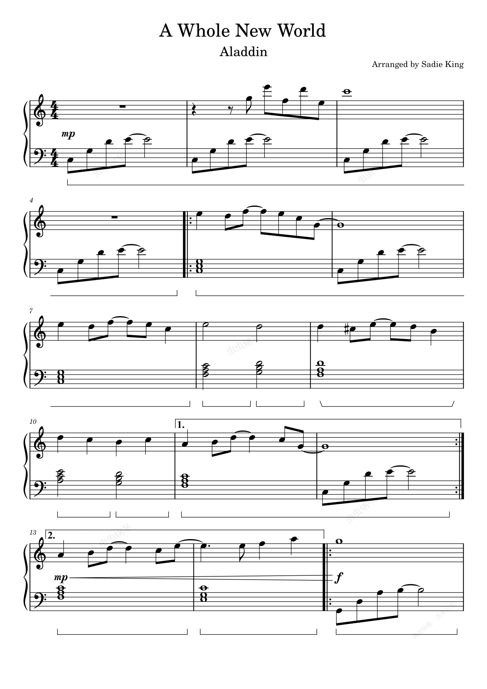 钢琴谱:阿拉丁 电影 A Whole New World - Aladdin - Easy Piano