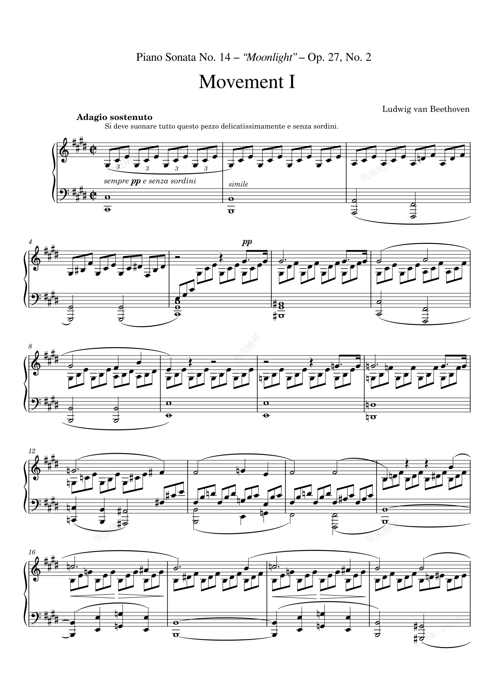 钢琴谱:贝多芬《月光奏鸣曲》 (原版高清无损)Sonata No.Beethoven – Piano Sonata No. 14 – “Moonlight”
