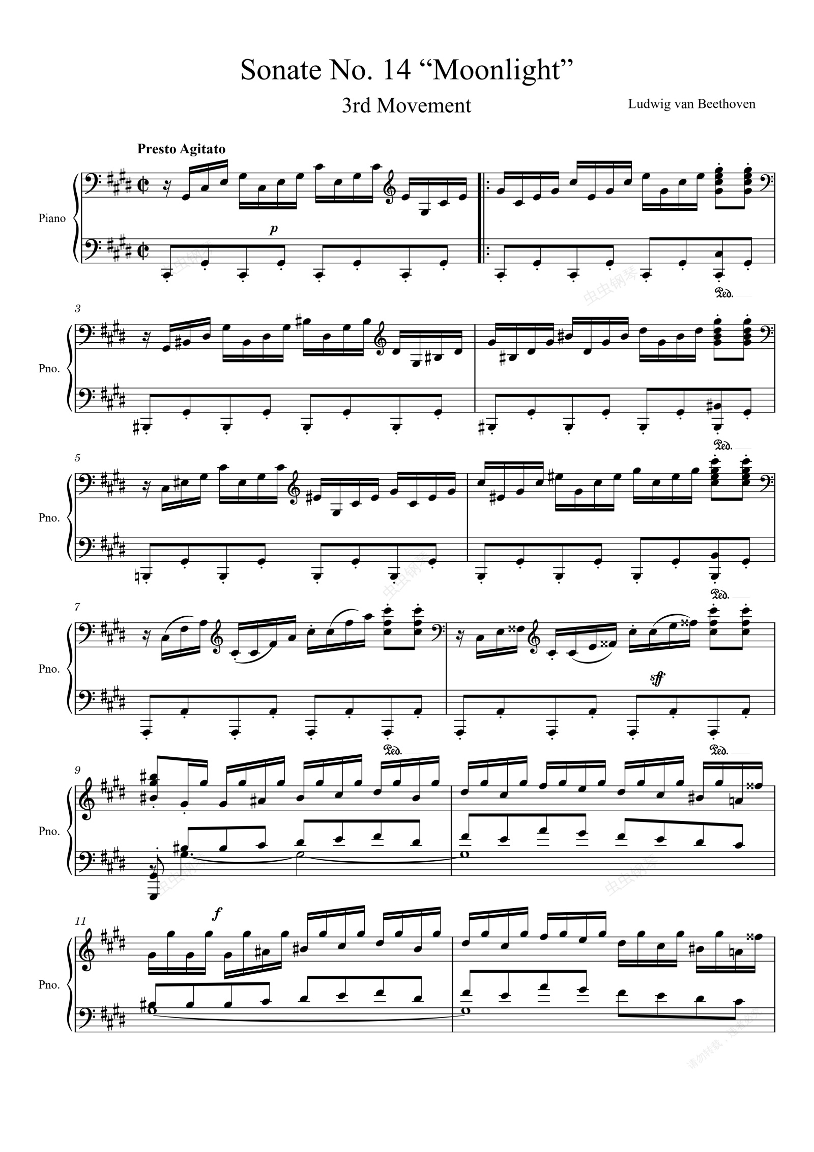 钢琴谱:月光奏鸣曲 Moonlight Sonata (3rd Movement) - Ludwig van Beethoven