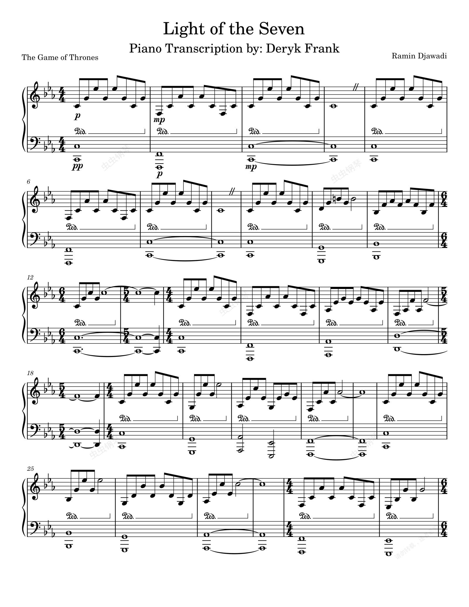 钢琴谱:七神之光 Light of the Seven - Ramin Djawadi Complete Transcription