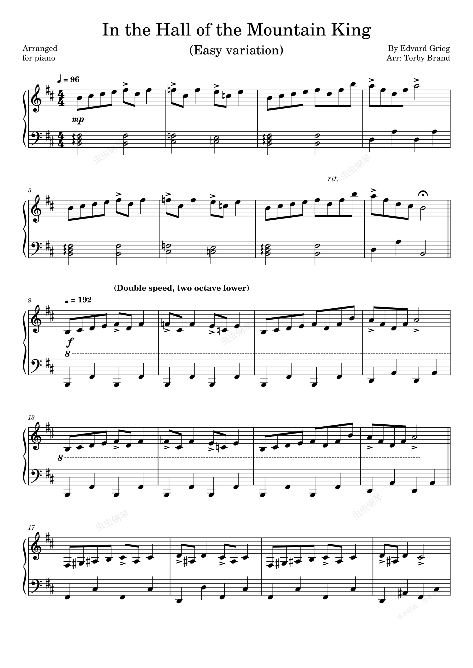钢琴谱:在山魔王的宫殿里In the Hall of the Mountain King Easy Variation (Edvard Grieg)
