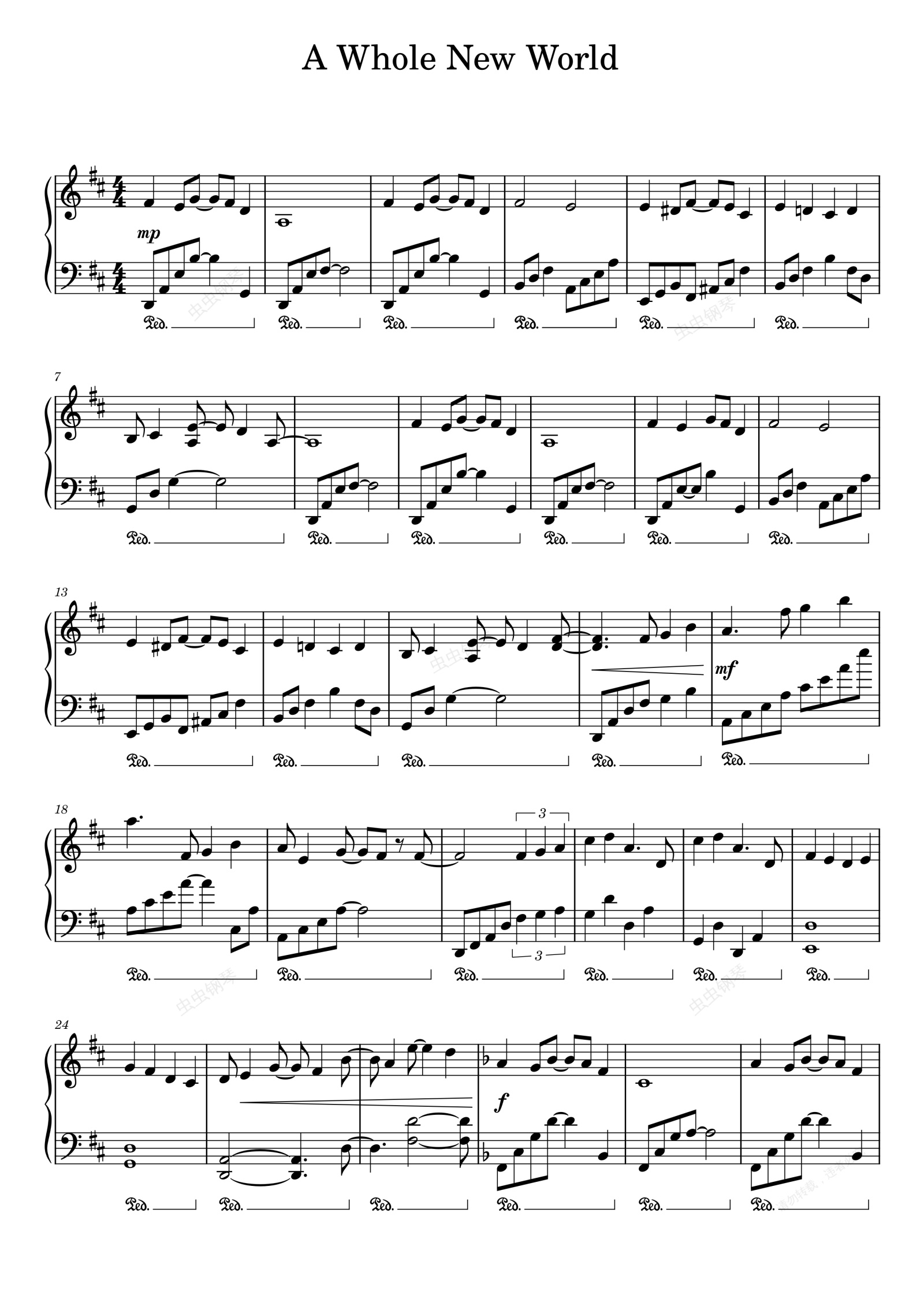 钢琴谱:阿拉丁 电影 A Whole New World - Aladdin