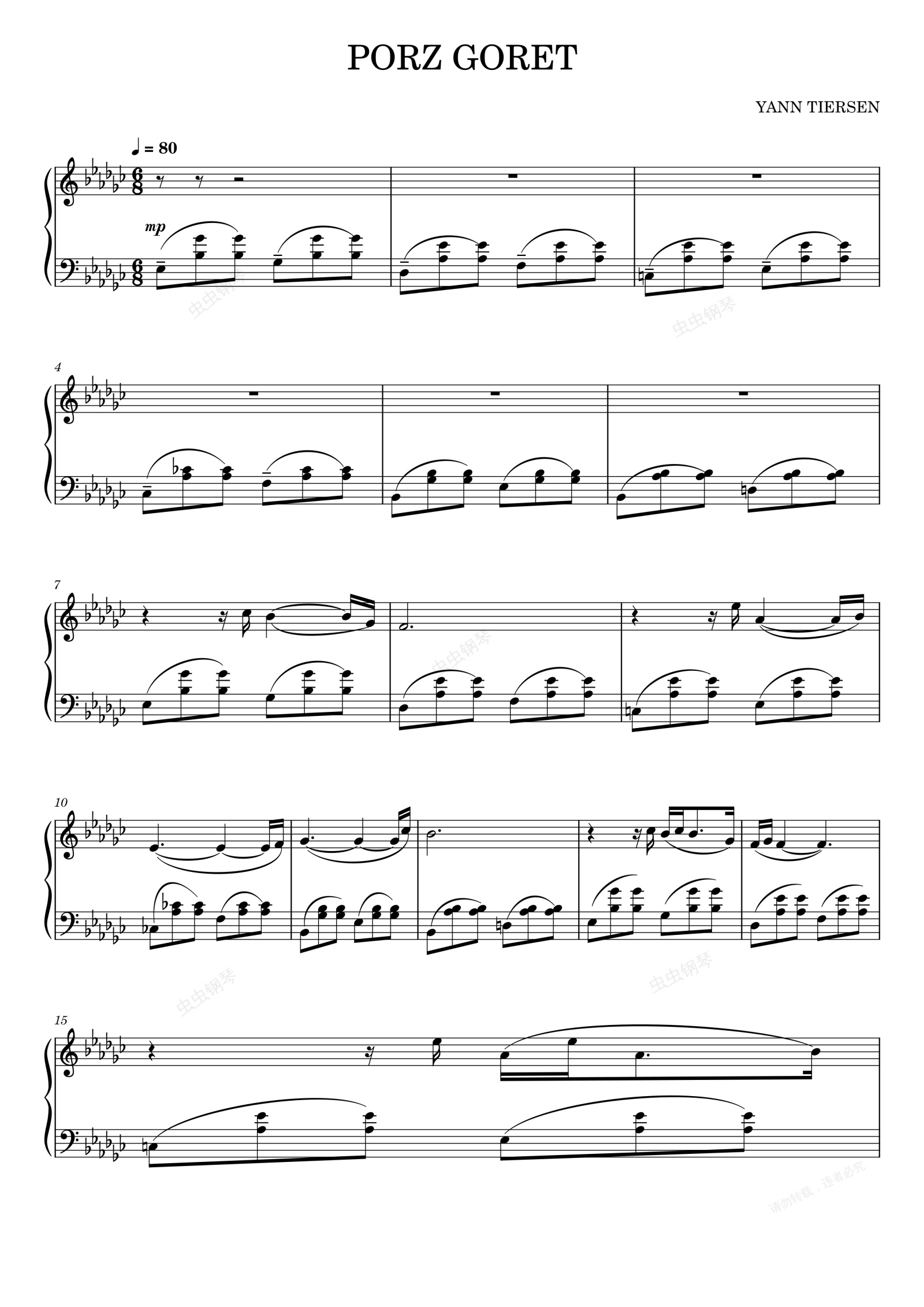 钢琴谱:Porz Goret-Yann Tiersen