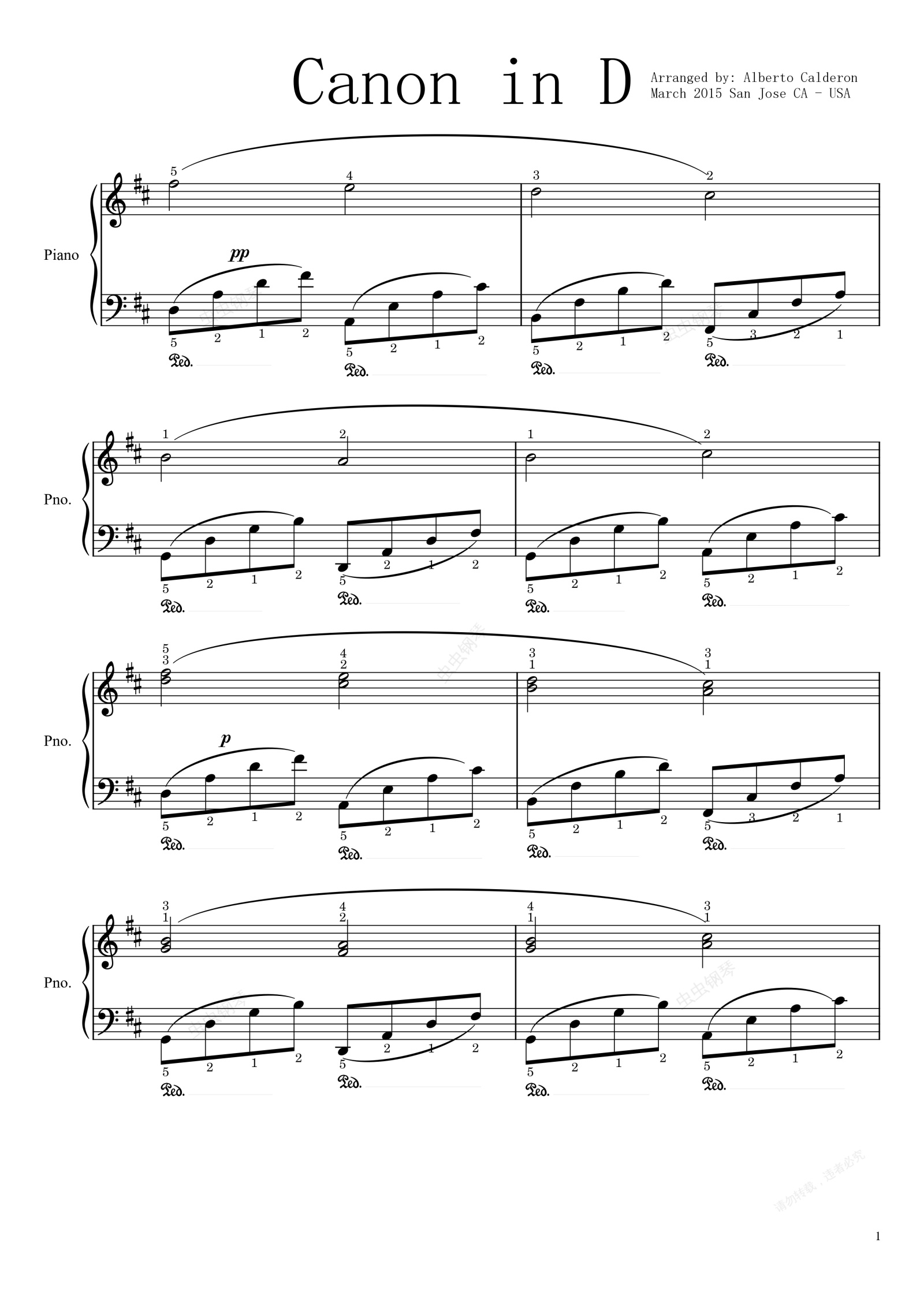 钢琴谱:D大调卡农 Canon in D Pachebel. Piano Version by AC