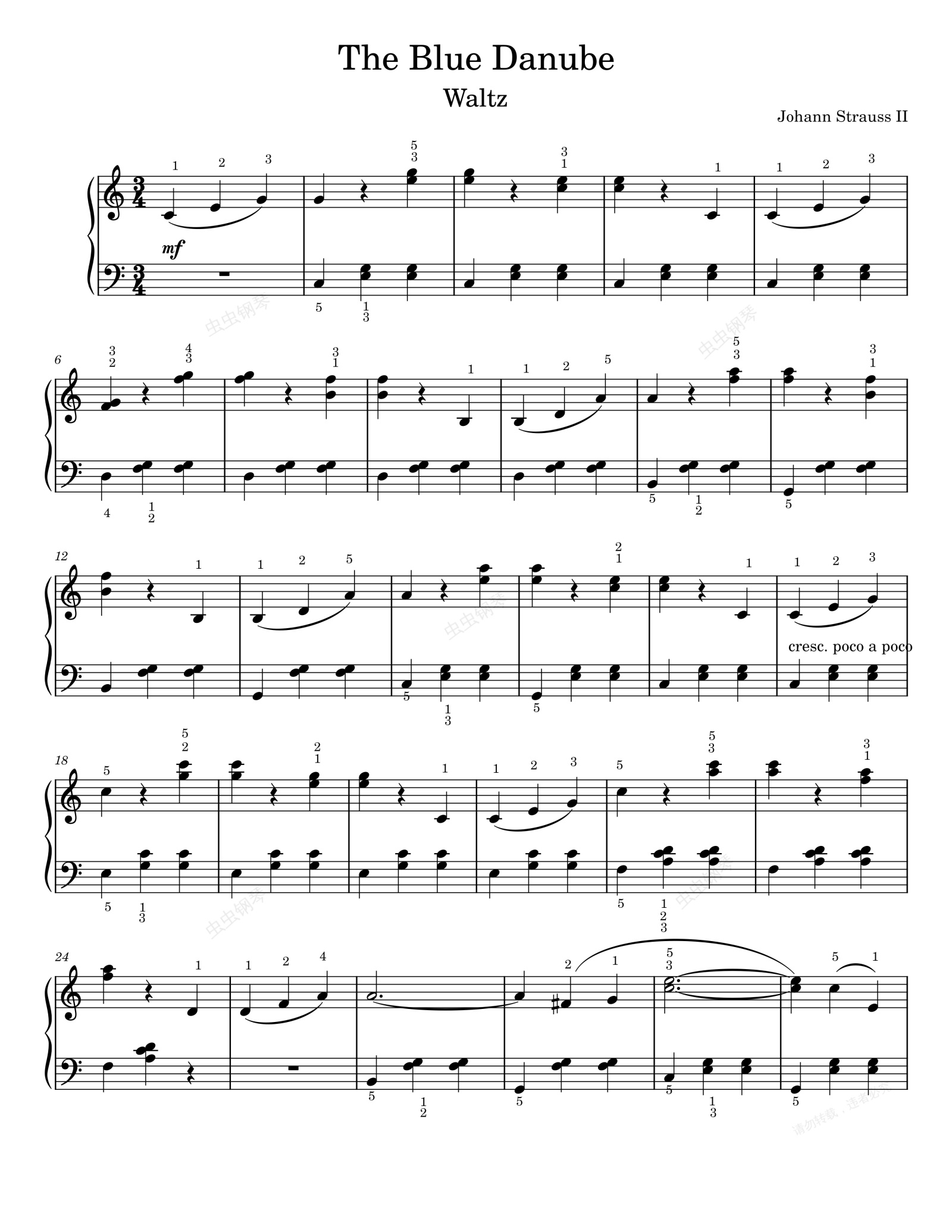 钢琴谱:蓝色多瑙河 The Blue Danube