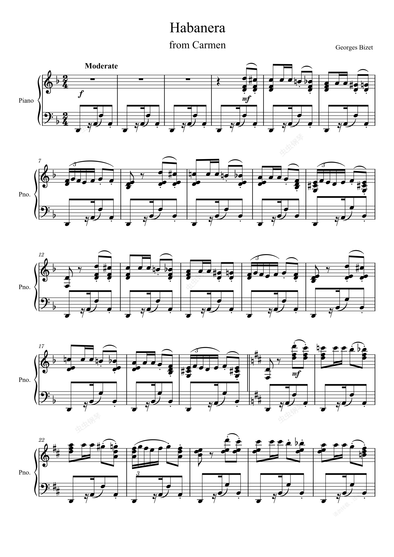 钢琴谱:哈巴涅拉《卡门》Habanera from Carmen