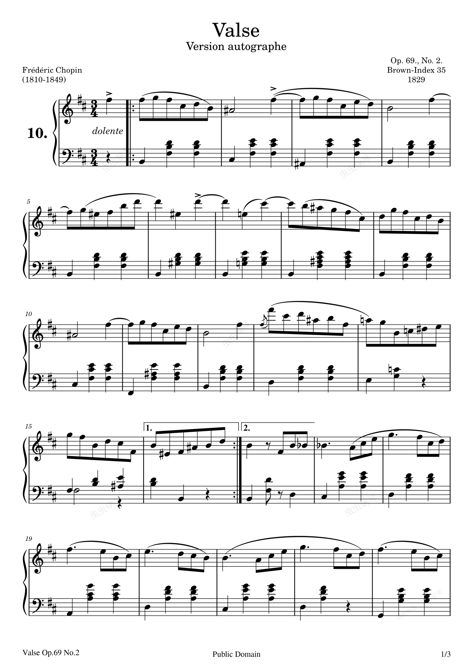 钢琴谱:肖邦b小调圆舞曲Waltz Op. 69 No. 2 - Urtext Edition - Frédéric Chopin