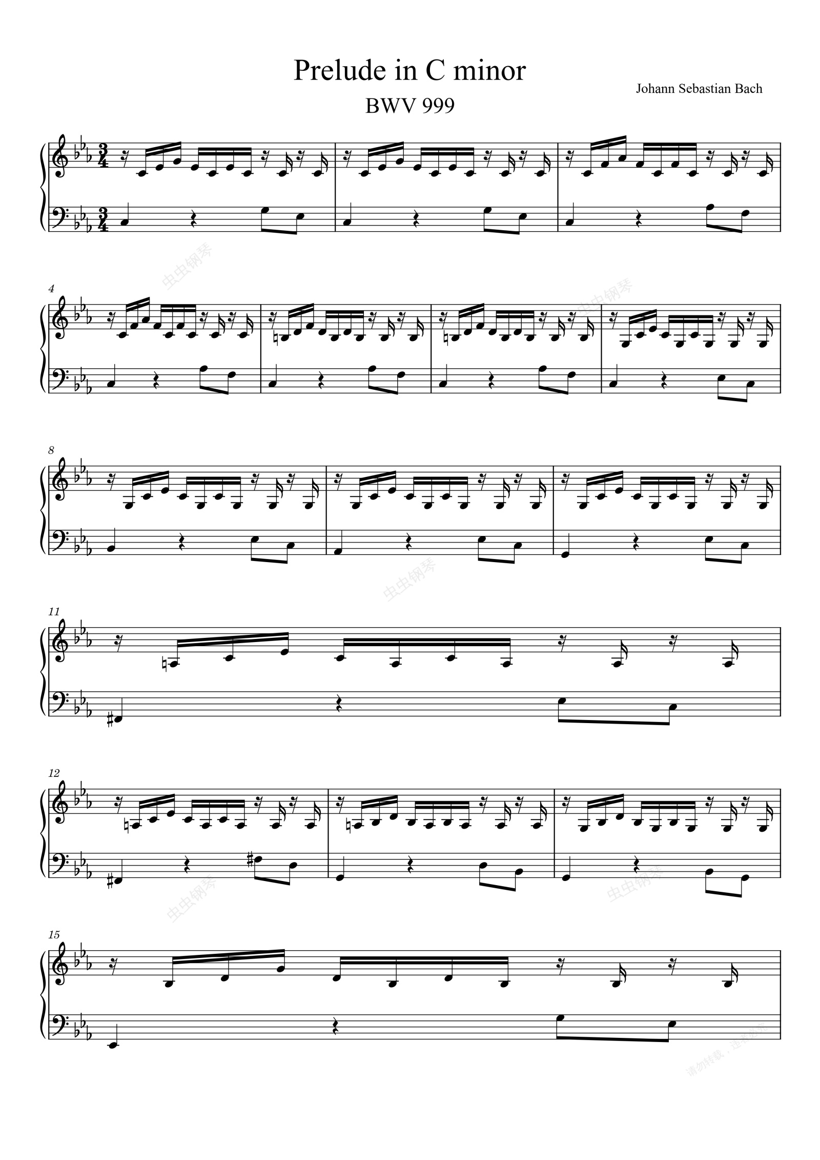 钢琴谱:c小调前奏曲 (巴赫) Prelude in C minor - BWV 999 - Bach