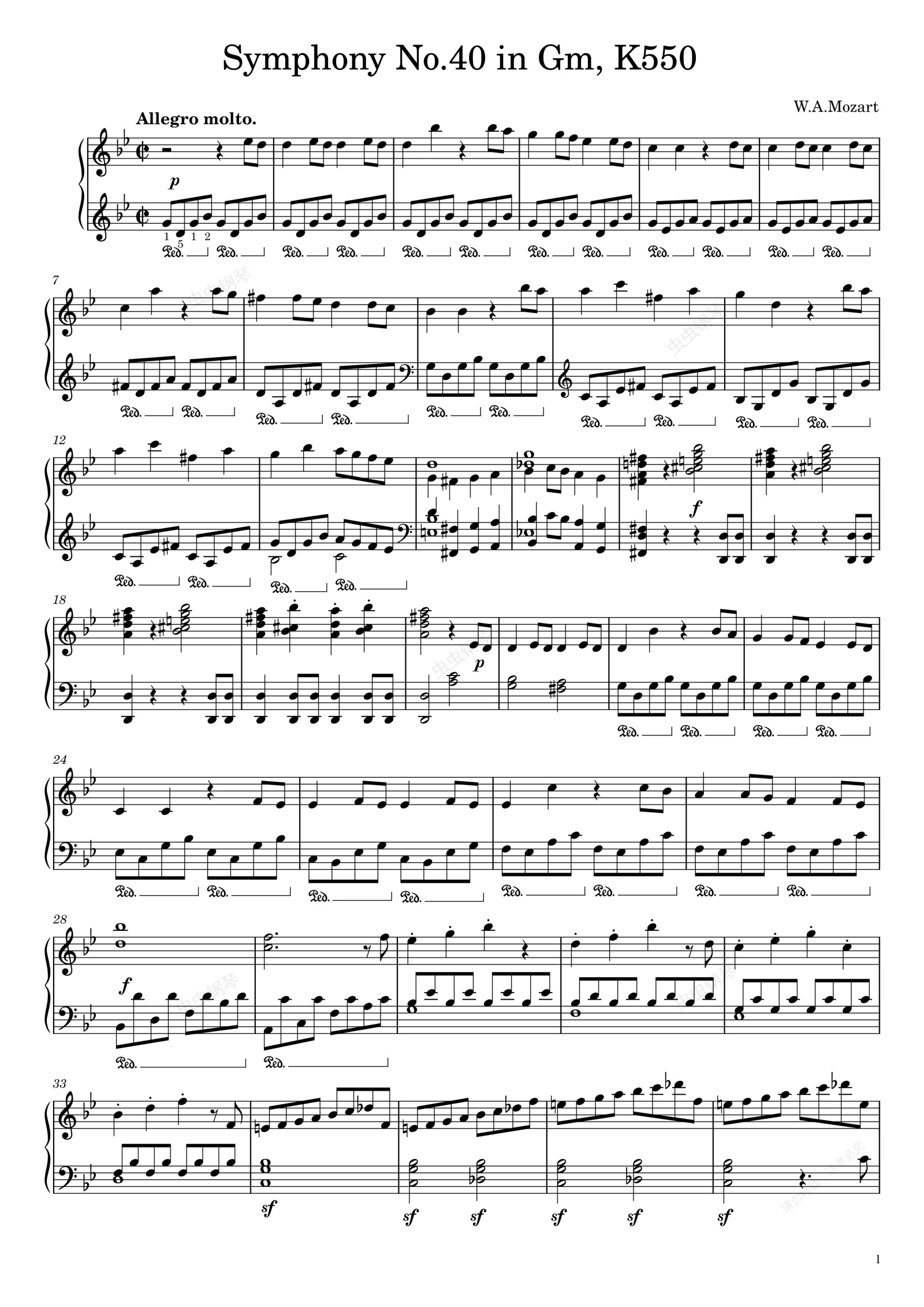 钢琴谱:莫扎特 第四十号交响曲W.A.Mozart - Symphony No.40 in Gm, K.550 1st mvt
