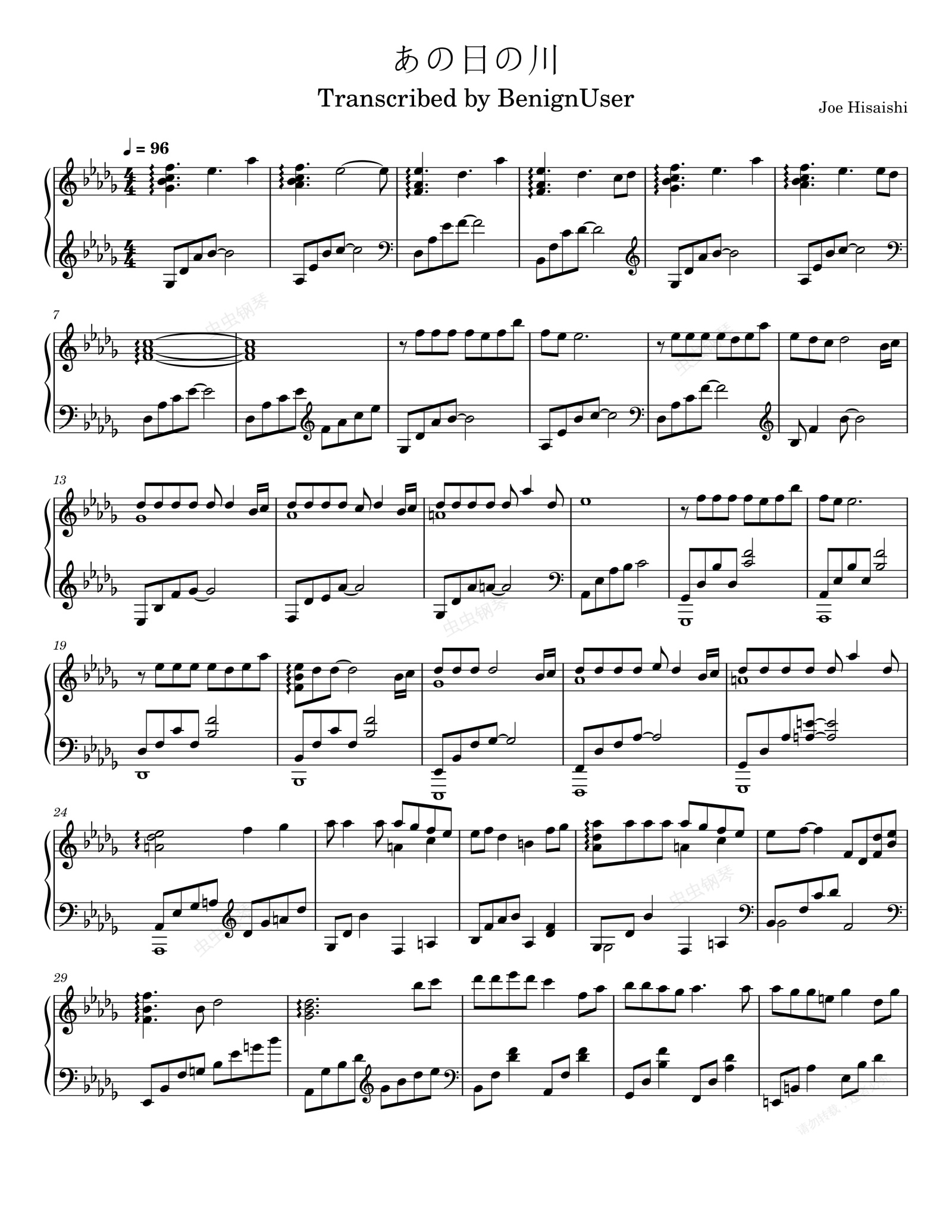 钢琴谱:あの日の川 【千与千寻】那一日的河川