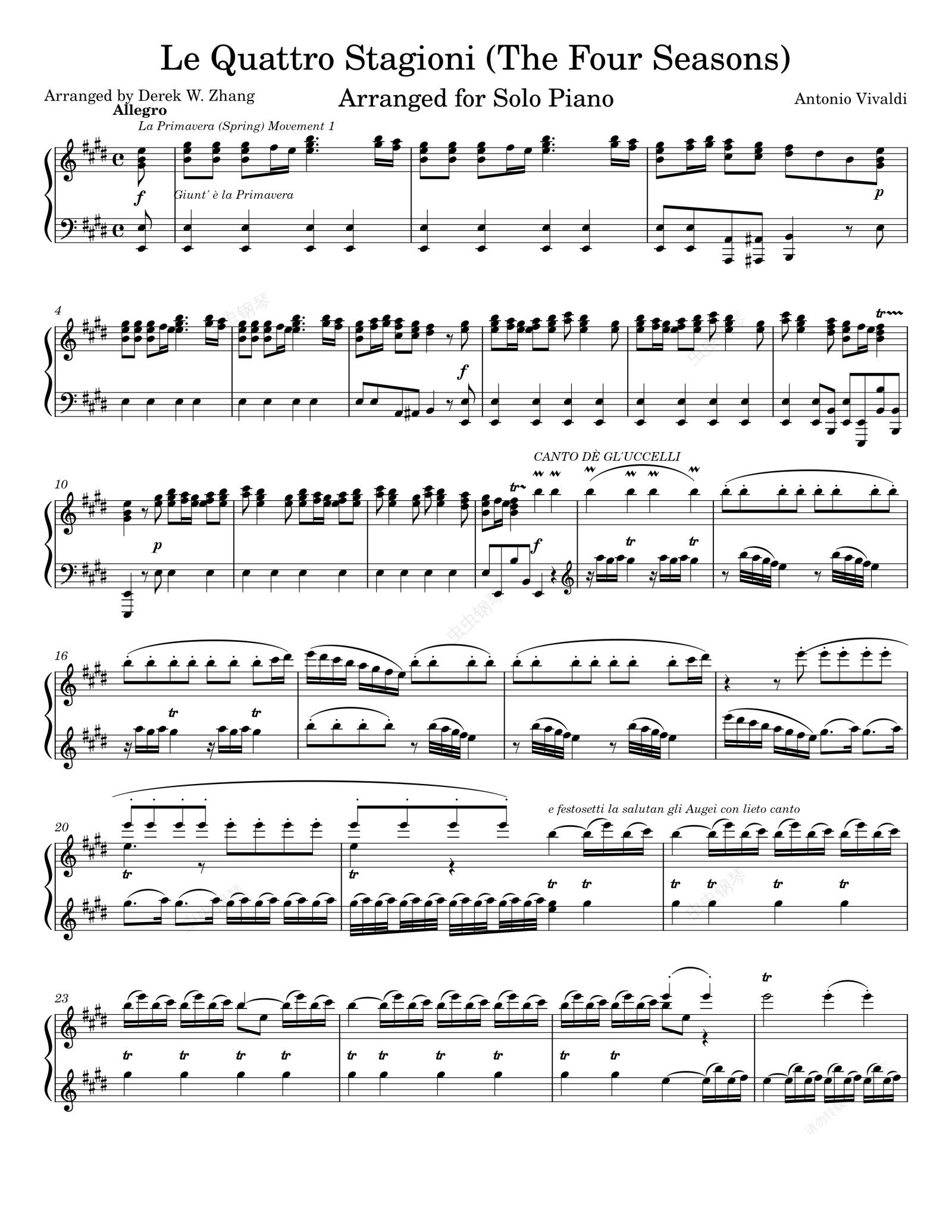 钢琴谱:维瓦尔第-四季 春The Four Seasons (Complete Piano Transcription)