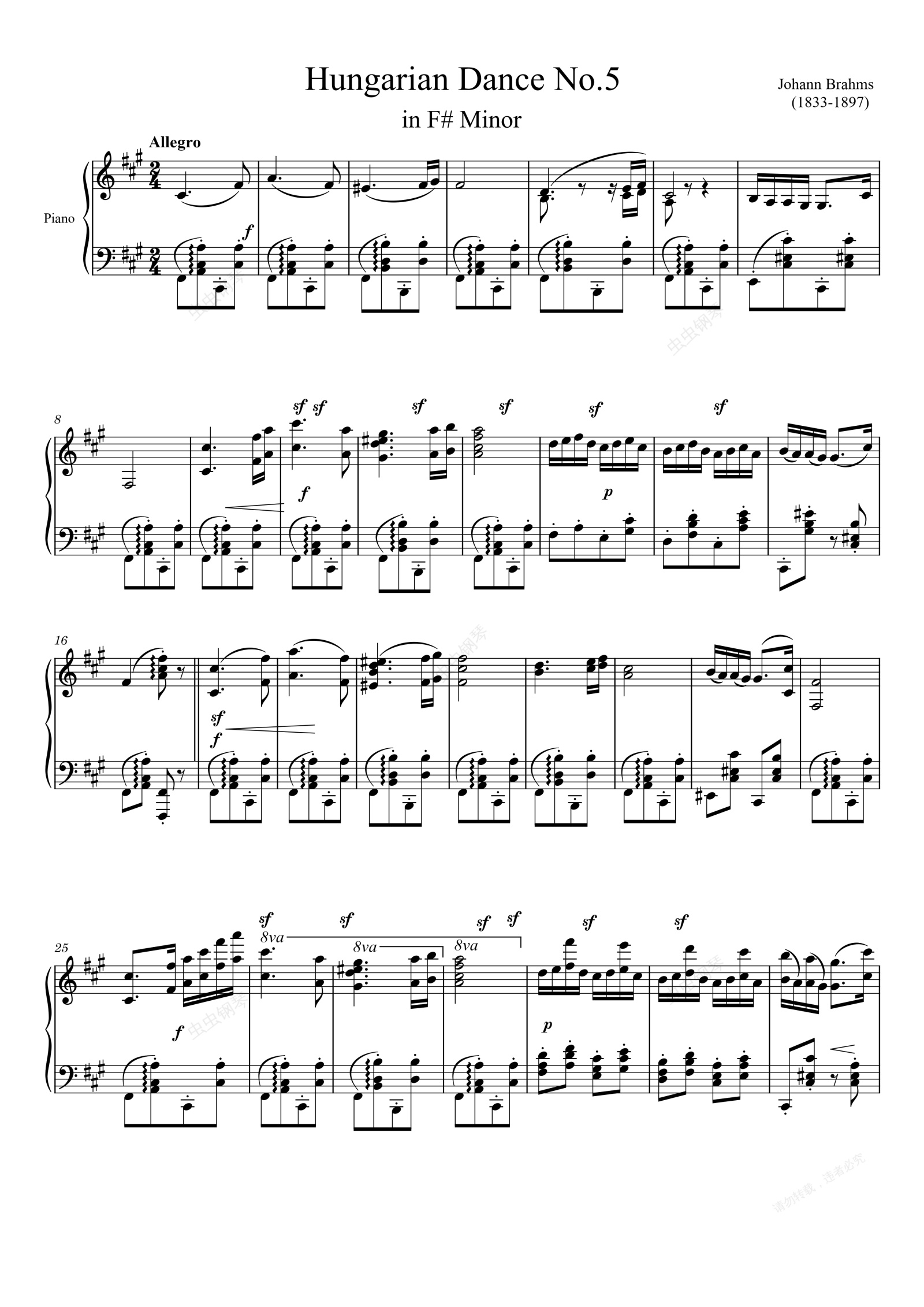 钢琴谱:匈牙利舞曲第五号 Hungarian Dance No.5