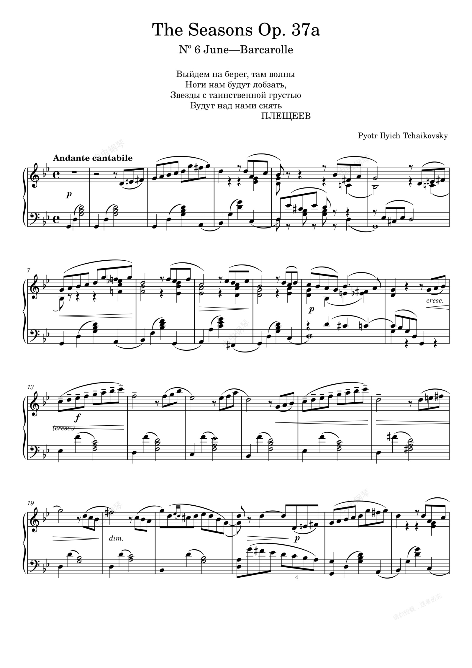 钢琴谱:六月船歌 柴可夫斯基 The Seasons, Op. 37a, June, Barcarolle
