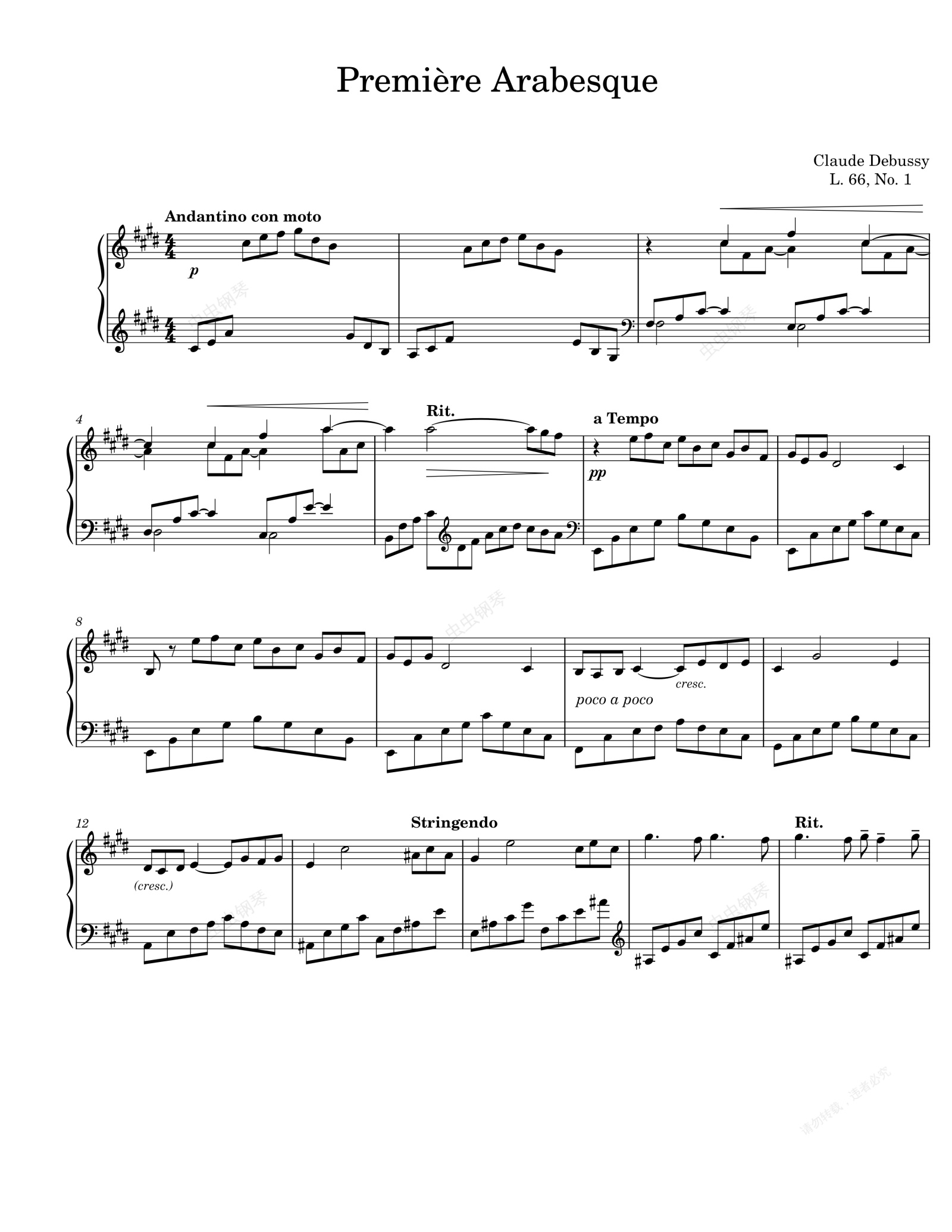钢琴谱:阿拉伯风格曲 (第一首) Debussy Première Arabesque, L. 66, No. 1
