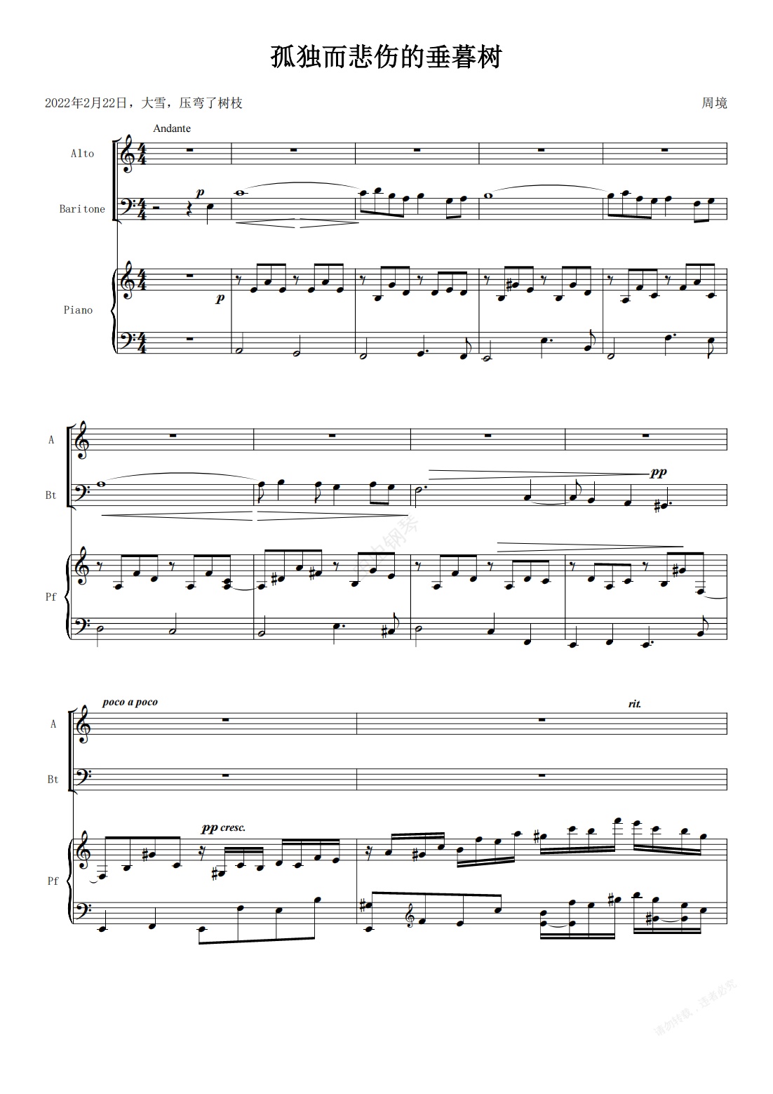 钢琴谱:孤独而悲伤的垂暮树