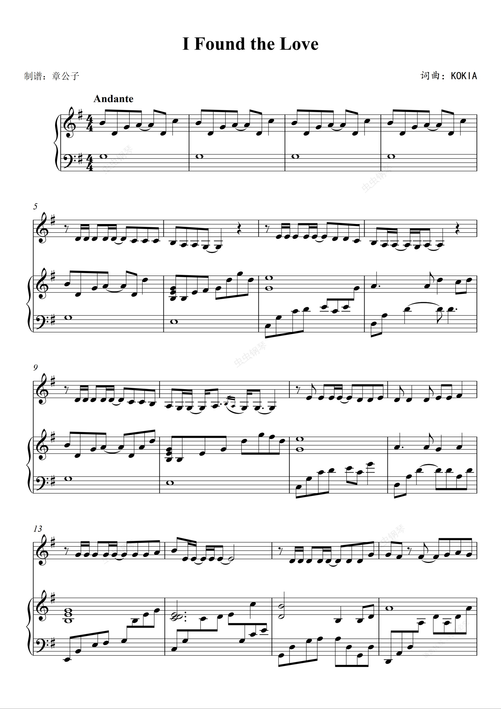 钢琴谱:《I Found the Love》- KOKIA (吉田亚纪子) 弹唱(伴奏)谱 原调G