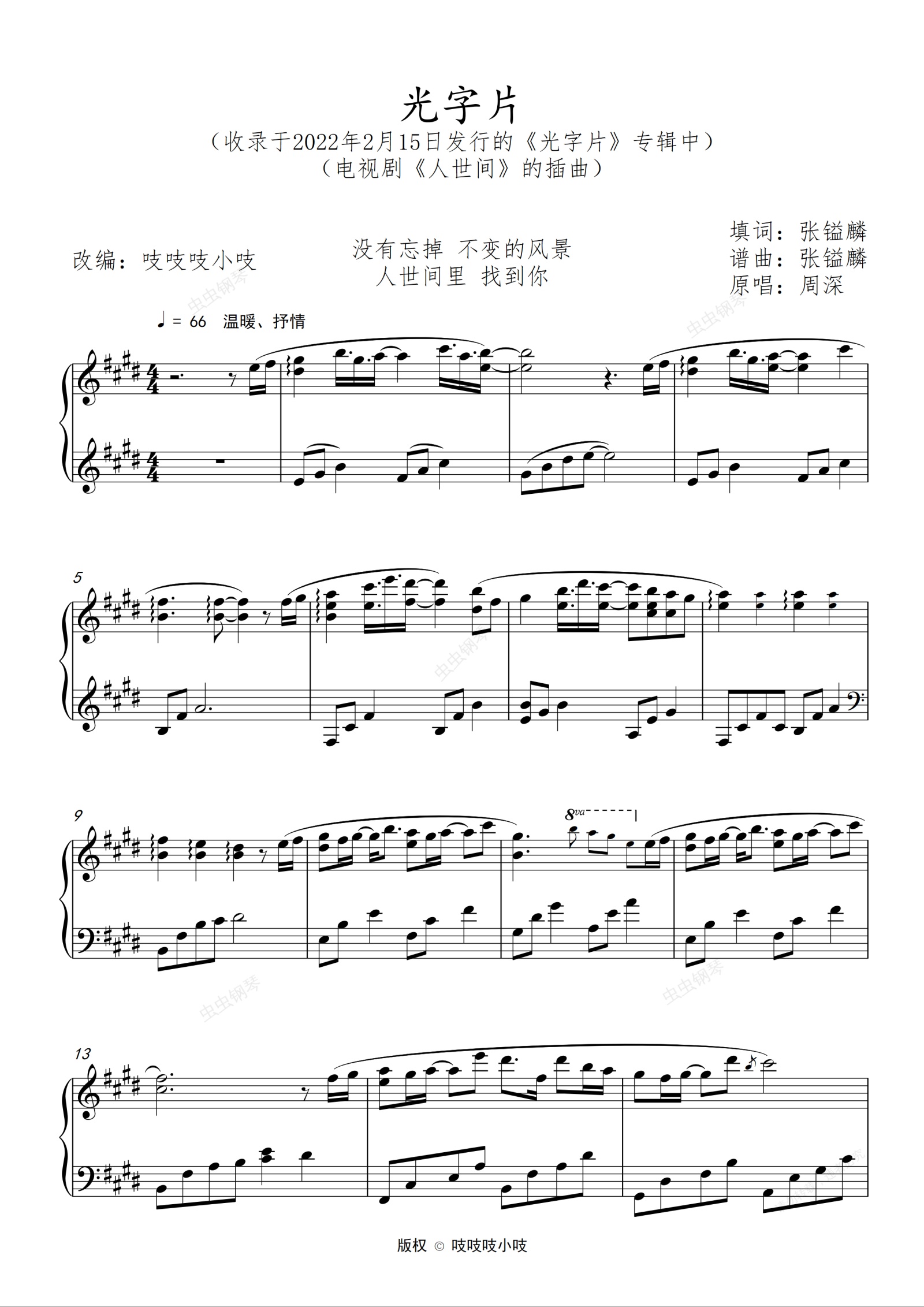 钢琴谱:光字片 电视剧《人世间》插曲 抒情简单版