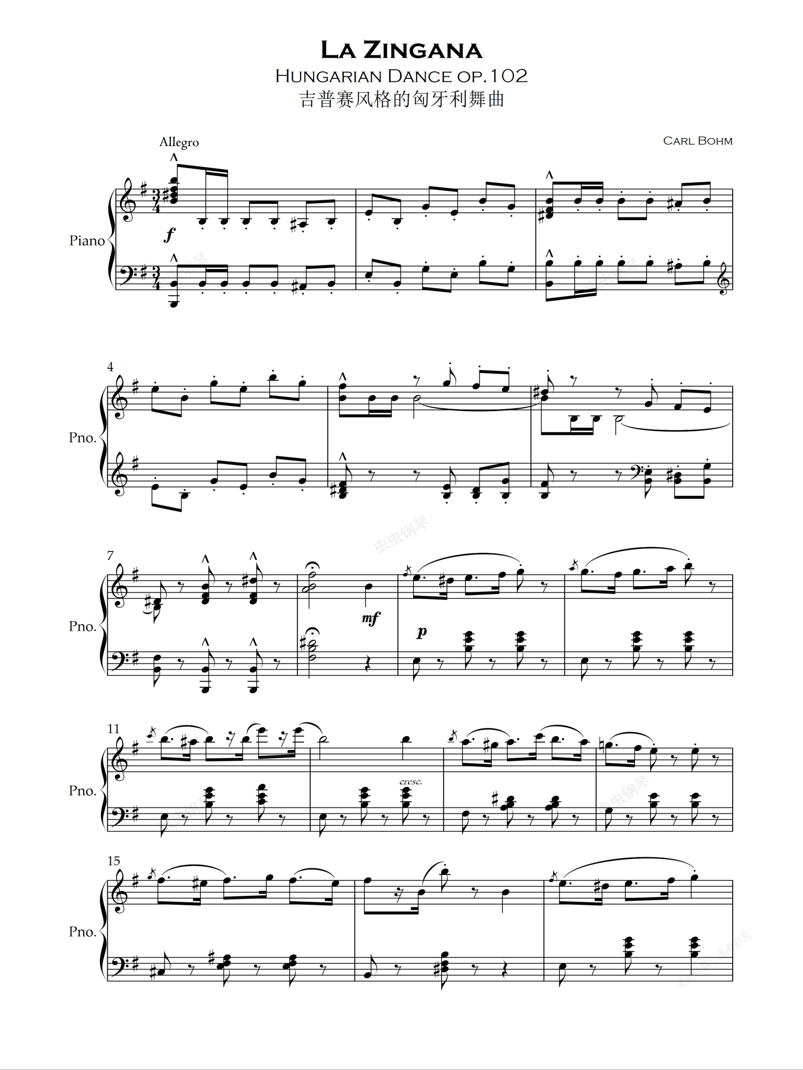 钢琴谱:【钢琴独奏】吉普赛风格的匈牙利舞曲 卡尔·伯姆