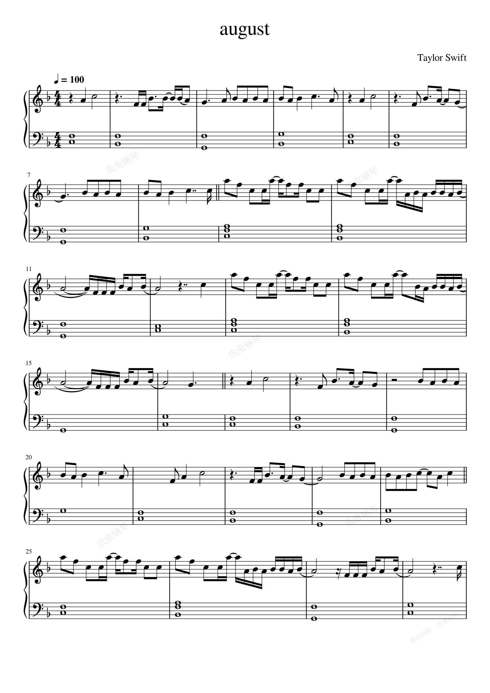 钢琴谱:august (Taylor Swift)