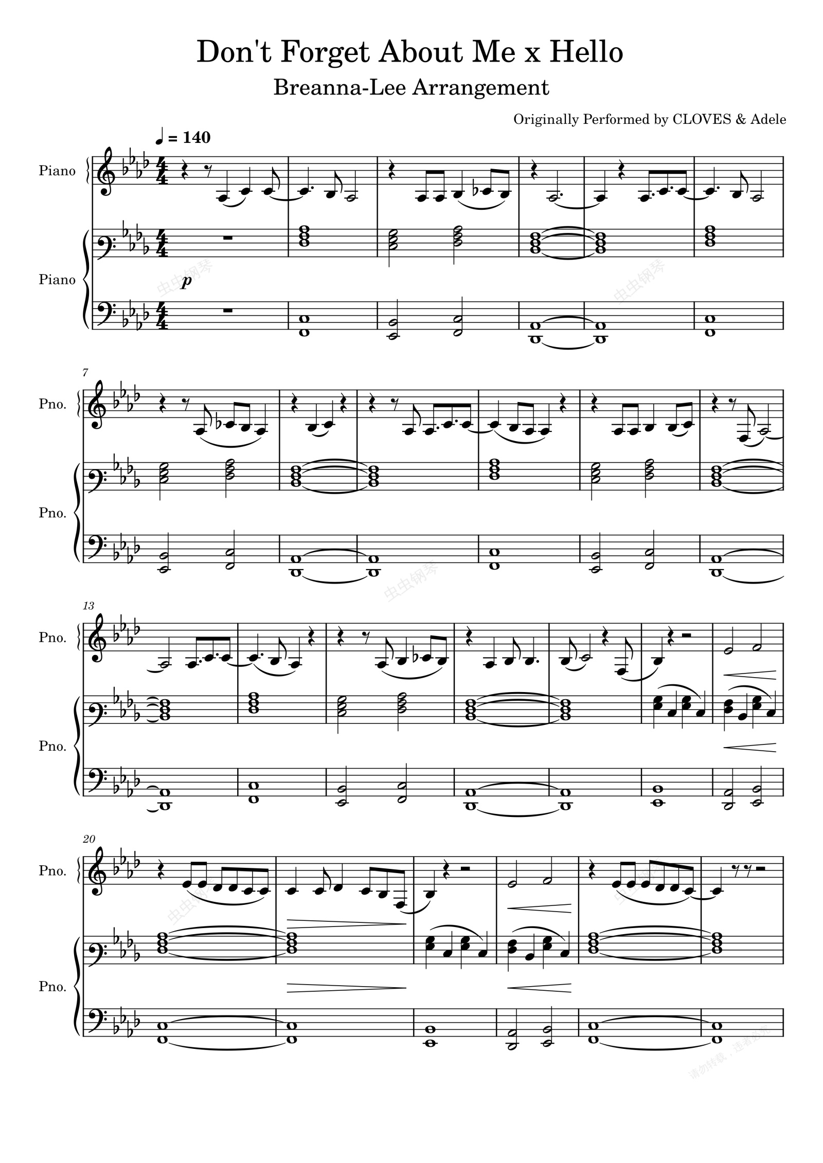 钢琴谱:Don't Forget About Me-CLOVES/Adele 遇见你之前 电影