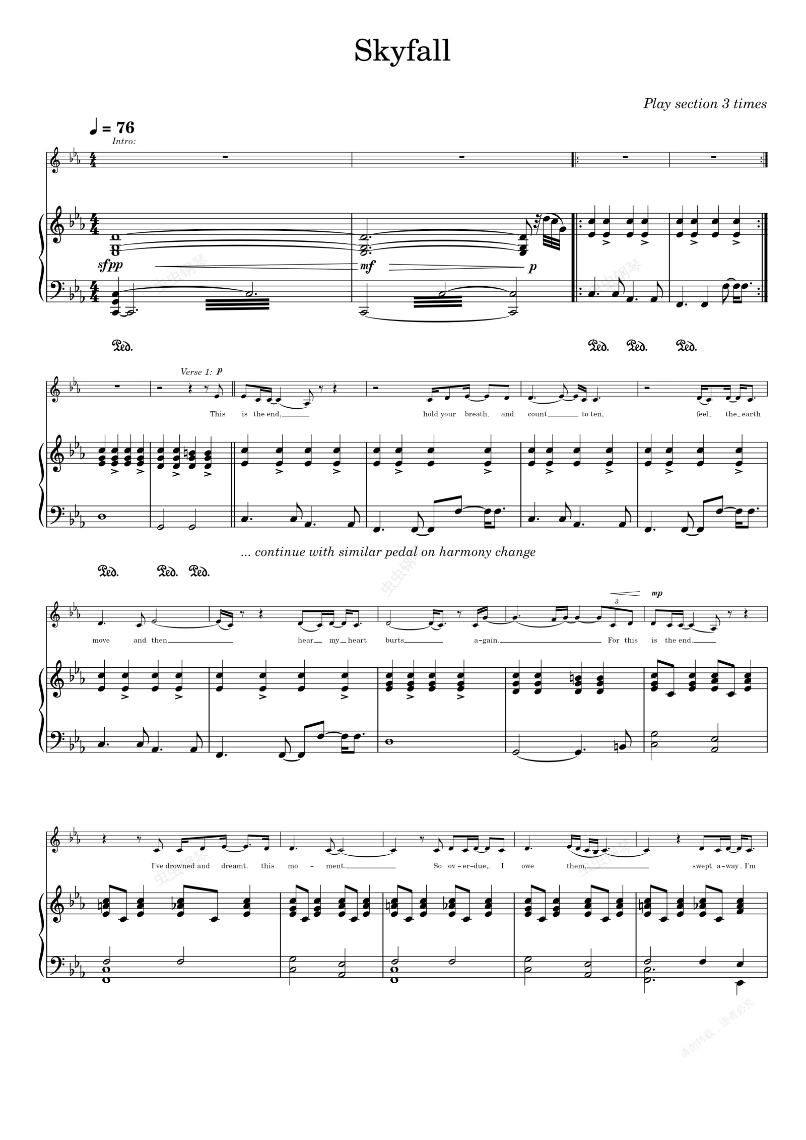 钢琴谱:Skyfall (天幕坠落) (《007:大破天幕杀机》电影主题曲) - Adele (阿黛尔)
