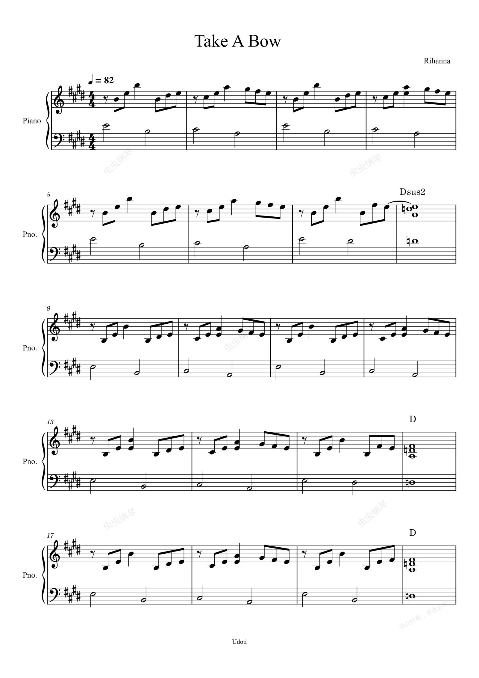 钢琴谱:Rihanna蕾哈娜 Take a Bow