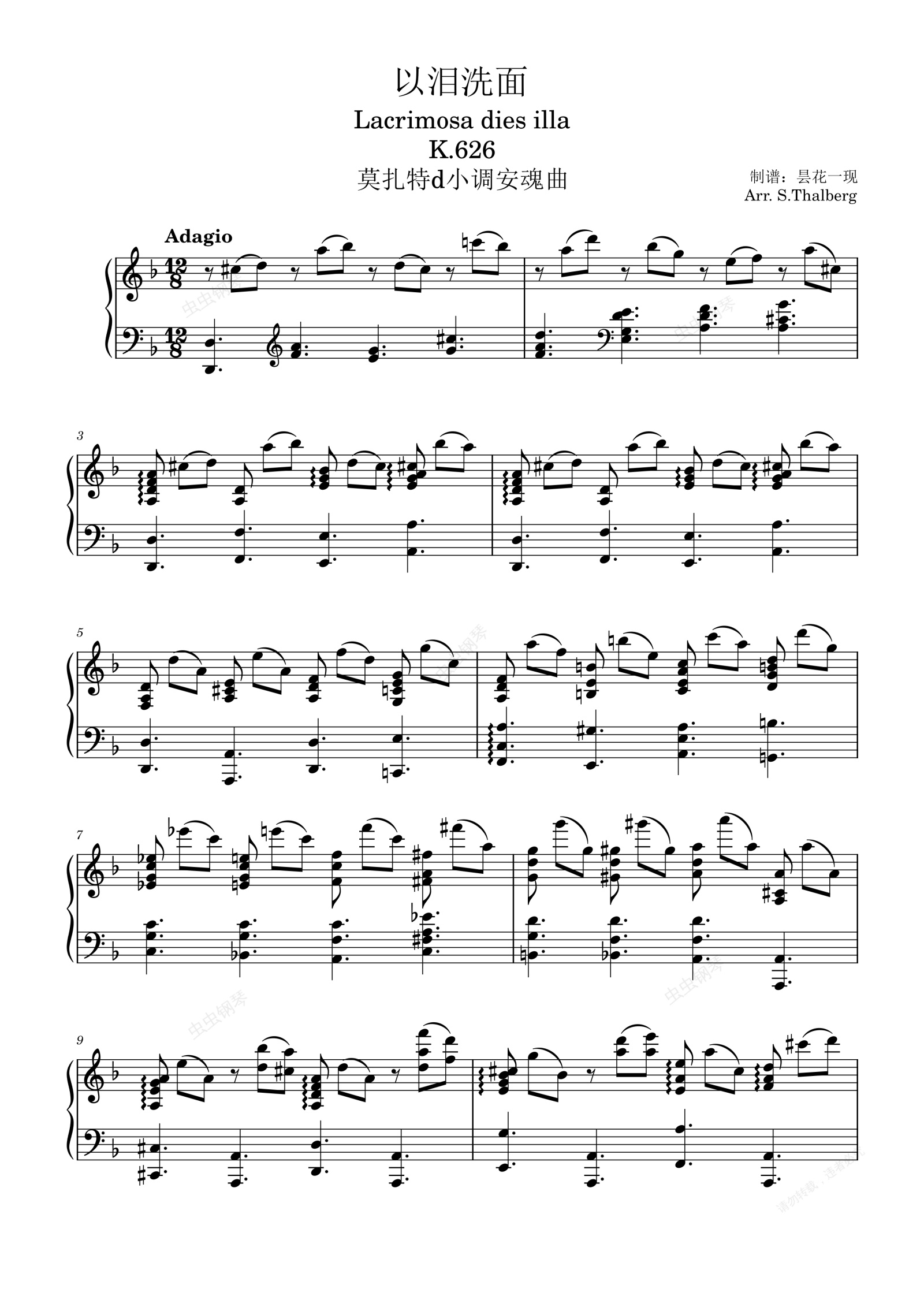 钢琴谱:以泪洗面,莫扎特d小调安魂曲