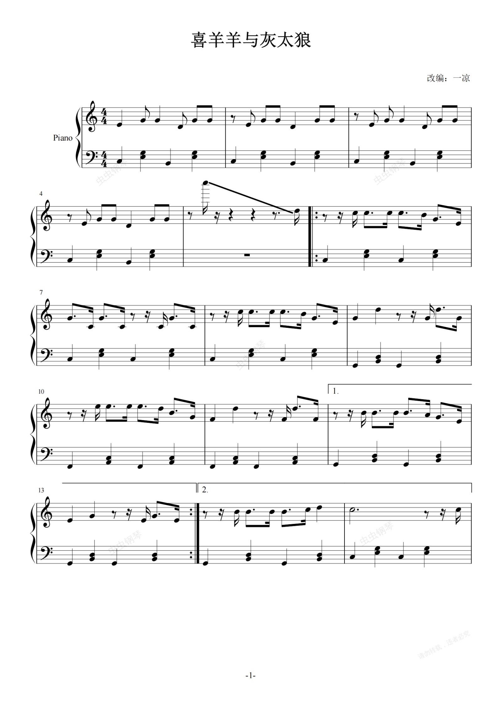 钢琴谱:别看我只是一只羊-喜羊羊与灰太狼 初级完美版