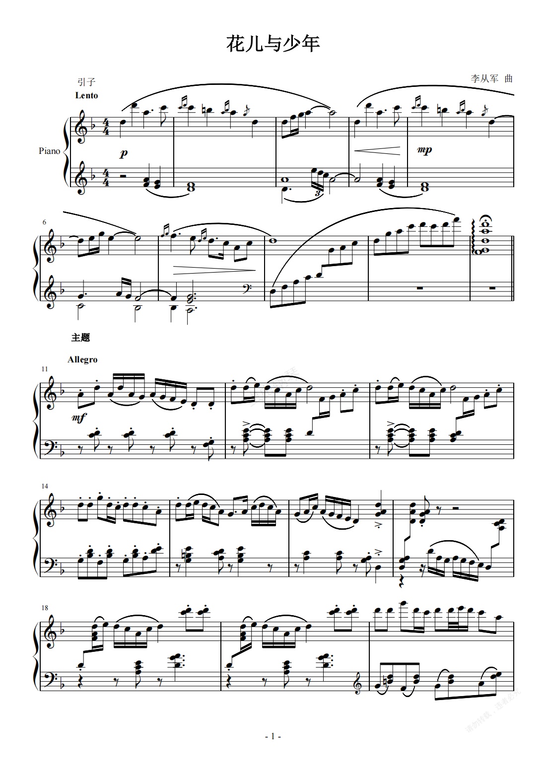 钢琴谱:《花儿与少年(李从军)》川音六级